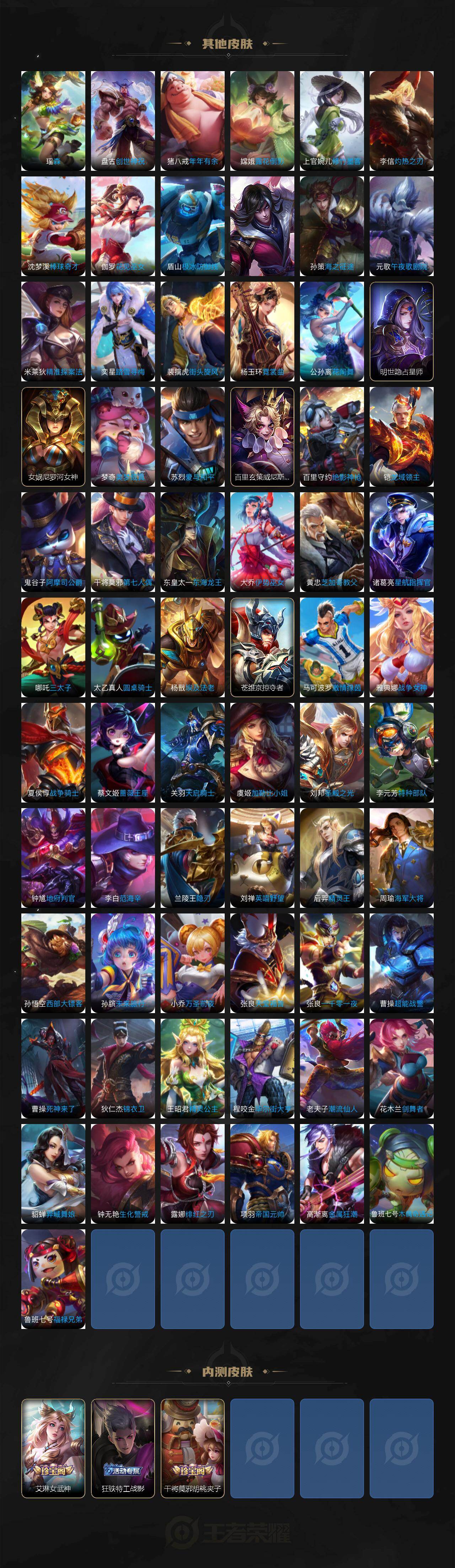 贵族等级10/荣耀典藏数量6/传说皮肤数量28/史诗皮肤数量112/皮肤数量378/英雄数量129/段位最强王者/孙权全皮/敖隐全皮/空空儿全皮/海诺全皮/武则天/全息碎影 孙悟空/天鹅之梦 小乔/星空梦想 鲁班七号/鸣剑·曳影 李白/星域神启 诸葛亮/弑枪猎影 韩信/李信问心剑/逐花归海 澜/觅芳踪 艾琳/霜月吟 露娜/鹤归松栖 云缨/画中仙 干将莫邪/诗剑行 李白/淬星耀世 赵云/飞鸢探春