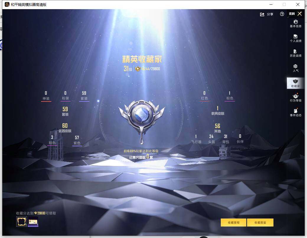 0粉装-3特效枪-1载具-0粉色飞行器-20896热力值-3王牌印记-59套装-71枪皮