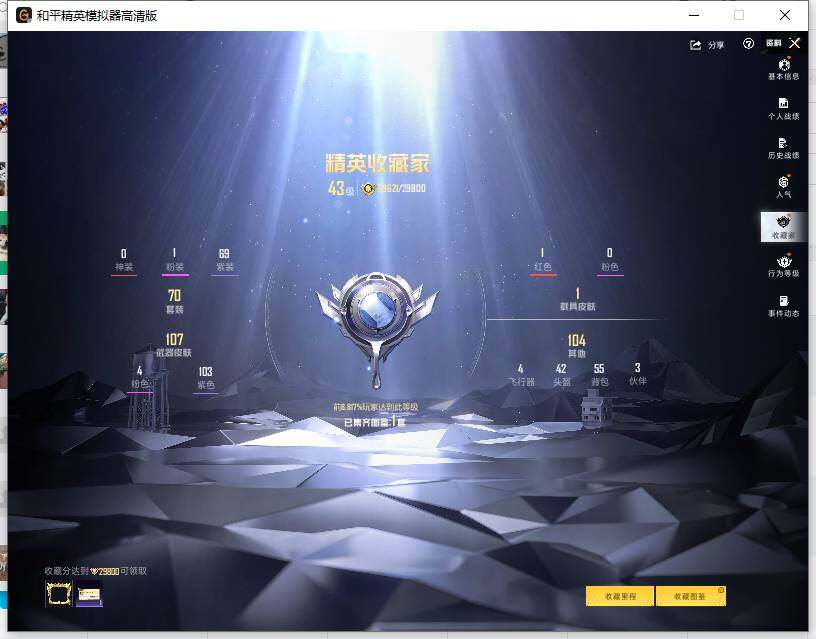 1粉装-4特效枪-1载具-2粉色飞行器-33326热力值-1王牌印记-70套装-118枪皮
