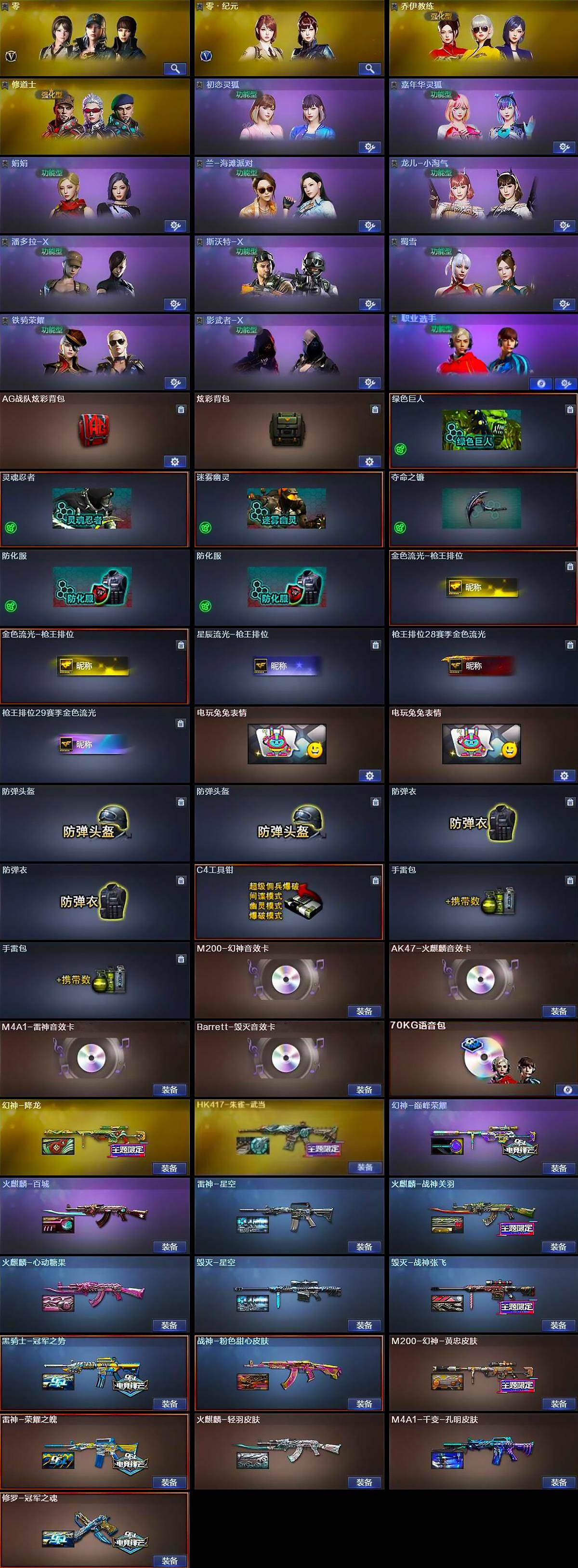 【音效卡】:M200-幻神音效卡,AK47-火麒麟音效卡,M4A1-雷神音效卡,Barrett-毁灭音效卡,70KG语音包