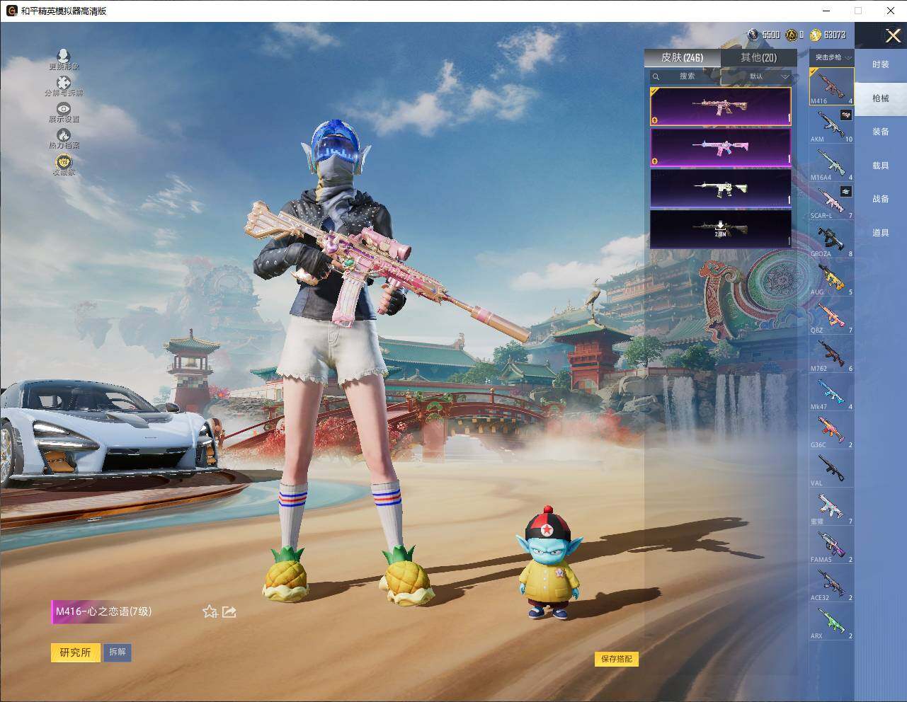 1神装-11粉装-6特效枪-2载具-6粉色飞行器-83373热力值-6王牌印记-170套装-246枪皮