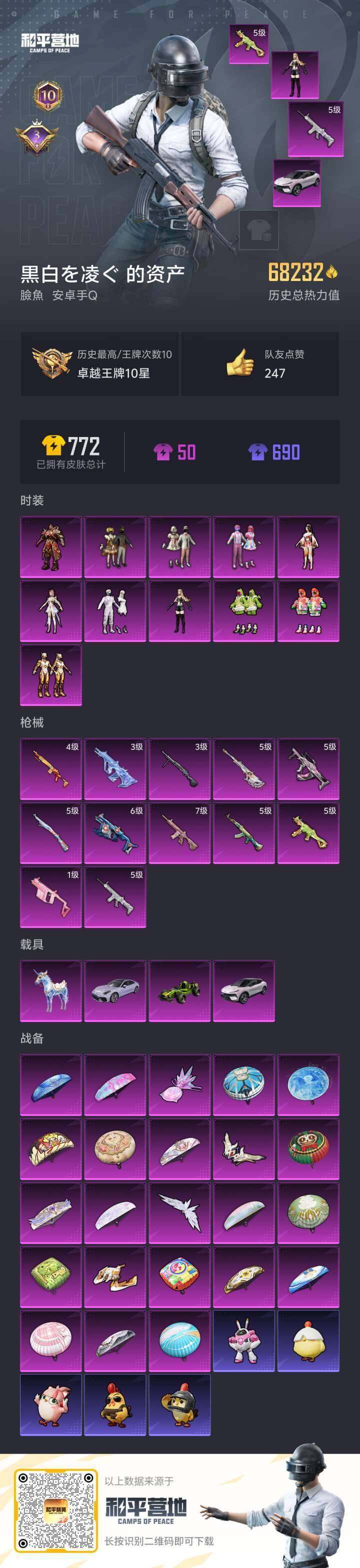 地铁满天赋!有二次可直接换绑【特价出售/店主推荐】安卓 手Q-11粉装-12特效枪-4载具-4粉色飞行器-68232热力值-10王牌印记-119套装-221枪皮