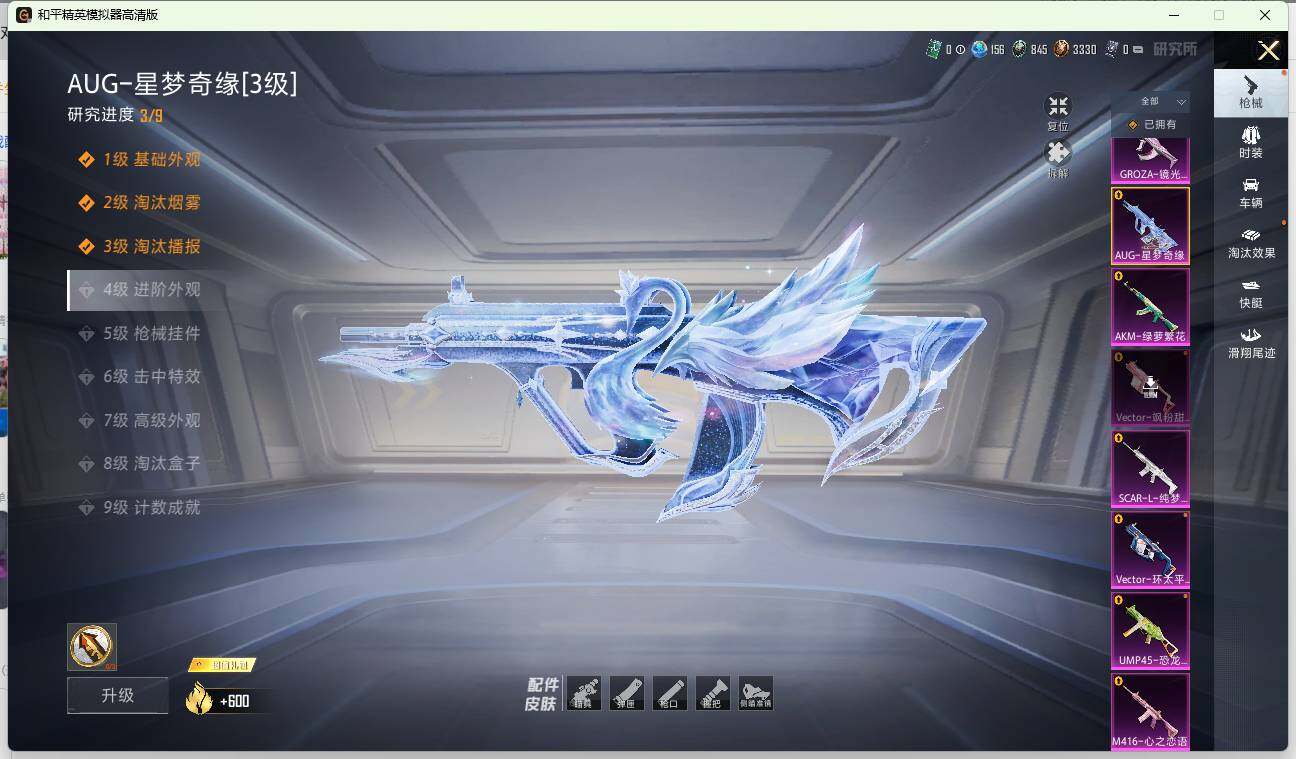 【粉色枪皮等级】:AKM-绿萝繁花(五级),SCAR-L-纯梦嫁纱(五级),M416-心之恋