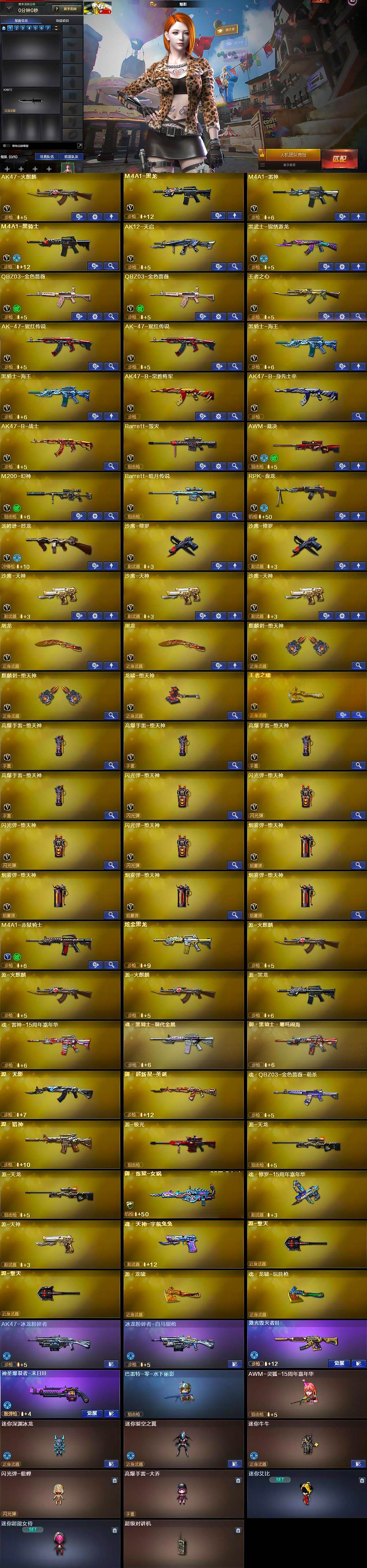 【皮肤】:幻神-AG-CFPLS17冠军,白虎-大汉风骨,雷神-荣耀之魄,M4A1-战神赵云,火麒麟-冠军之心,火麒麟-战神关羽,毁灭-