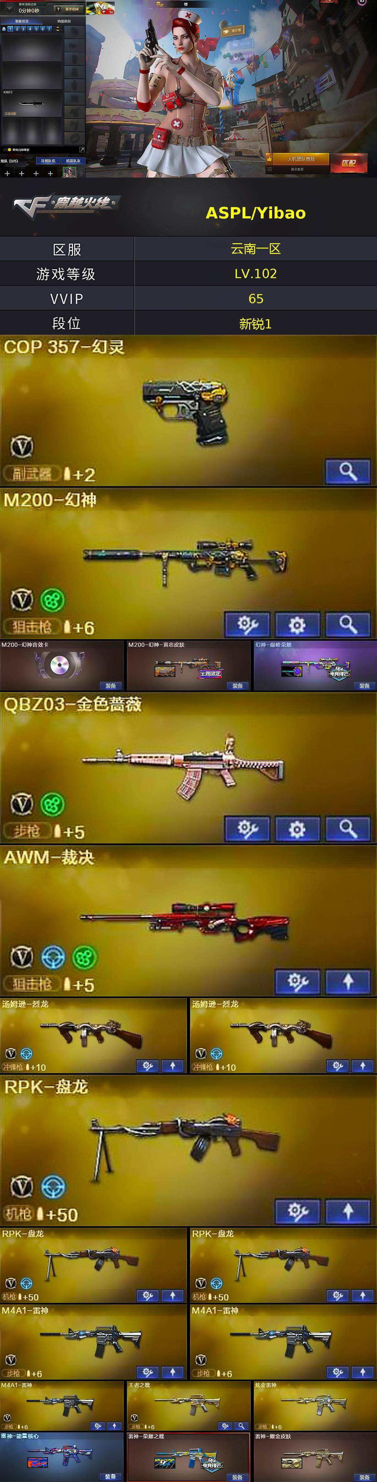 【热门武器】:QBZ03-金色蔷薇,HK417-朱雀,M200-幻神,M4A1-黑骑士,汤姆逊-烈龙*2,RPK-盘龙*3,COP 357-幻灵,沙鹰-修罗*4