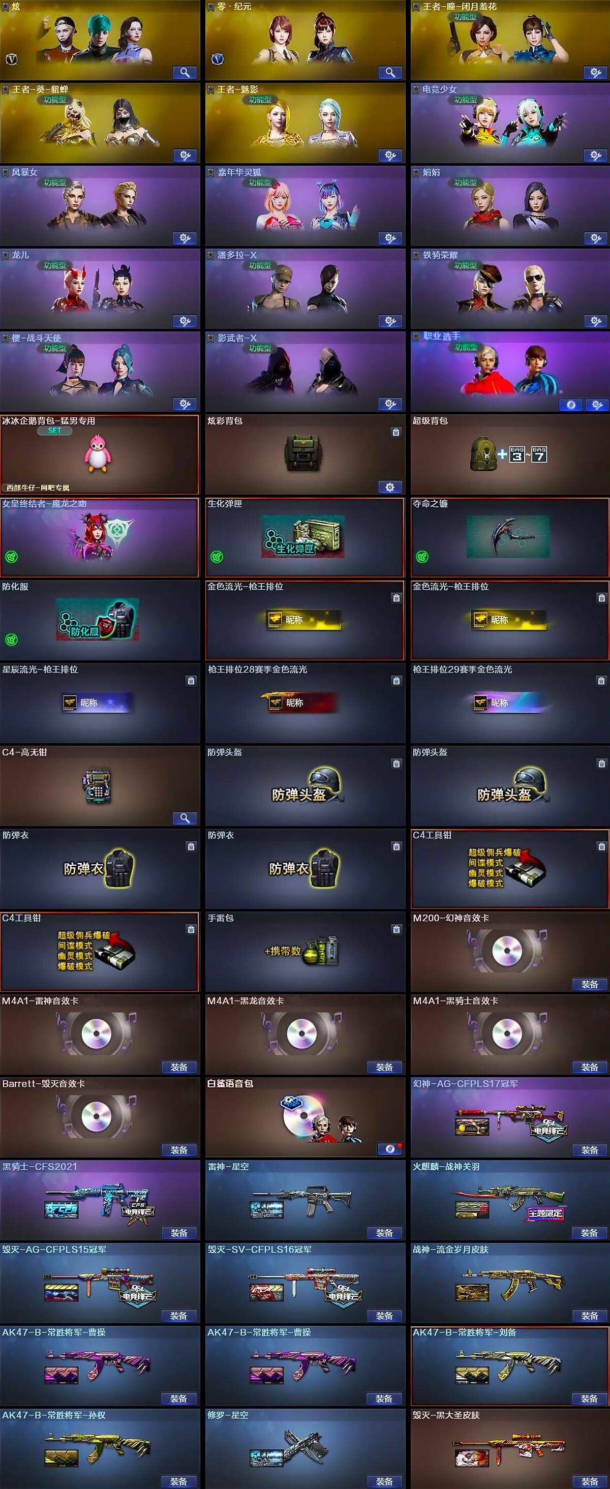 【音效卡】:M200-幻神音效卡,M4A1-雷神音效卡,M4A1-黑龙音效卡,M4A1-黑骑士音效卡,Barrett-毁灭音效卡,白鲨语音包