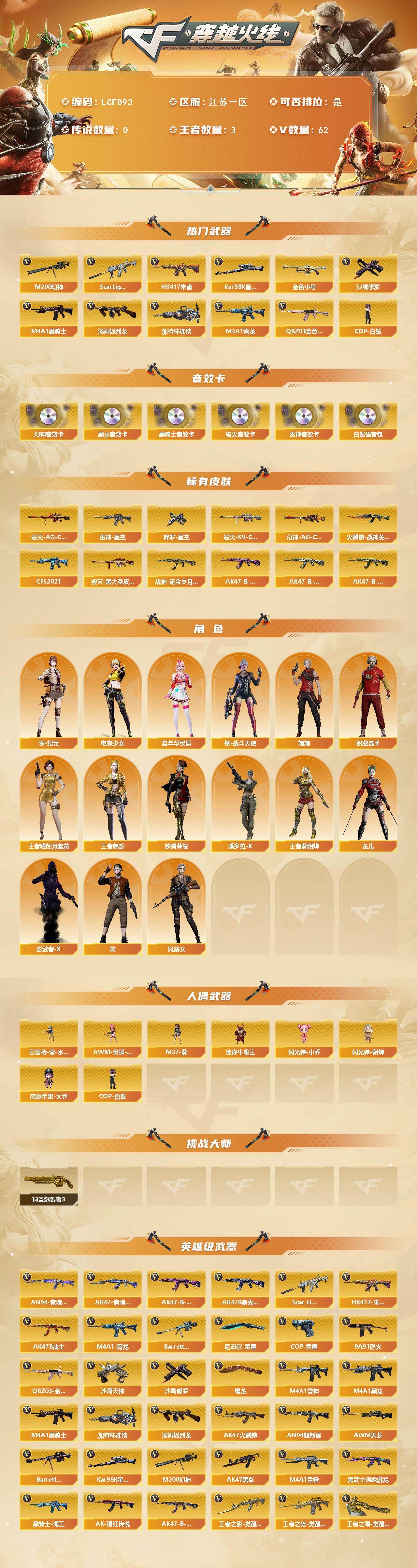 幻神三件套,江苏一区-65V-3王者武器数-0炫金武器数【热门武器】:QB