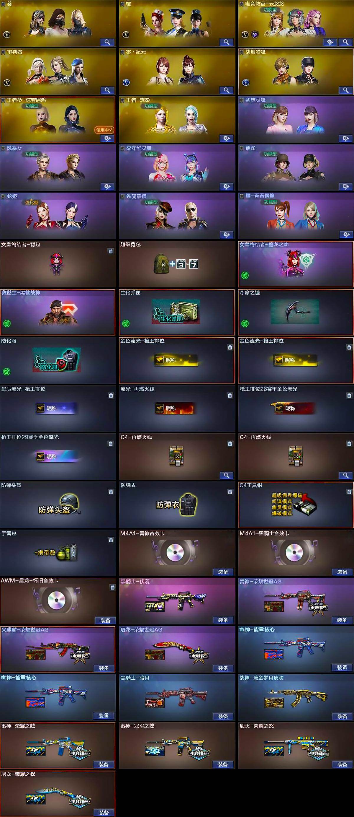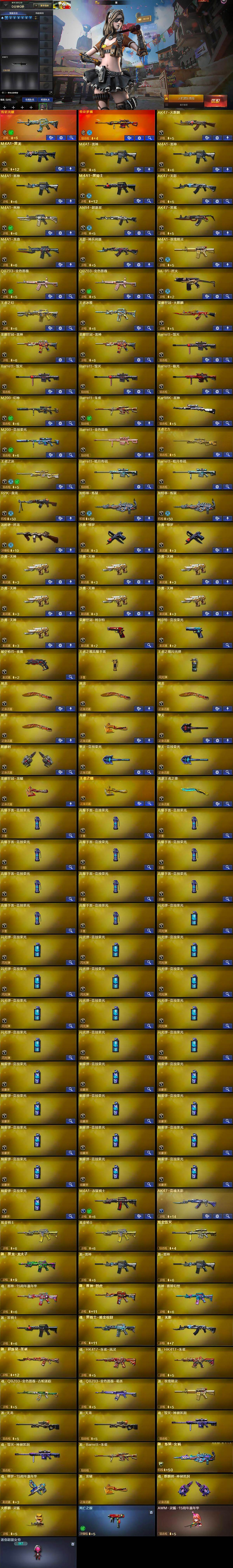 【热门武器】:传说光耀,传说梦魇,QBZ03-金色蔷薇*2,M200-幻神,M200-竞技荣光,死亡之眼,荣耀世冠-火麒麟,荣耀世冠-雷神*2,荣耀世冠-柯尔特,Kar98K-星神,M4A1-黑骑士,汤姆逊-烈龙,RPK-盘龙,加特林-炼狱*2,沙鹰-修罗*2,荣耀世冠-龙啸