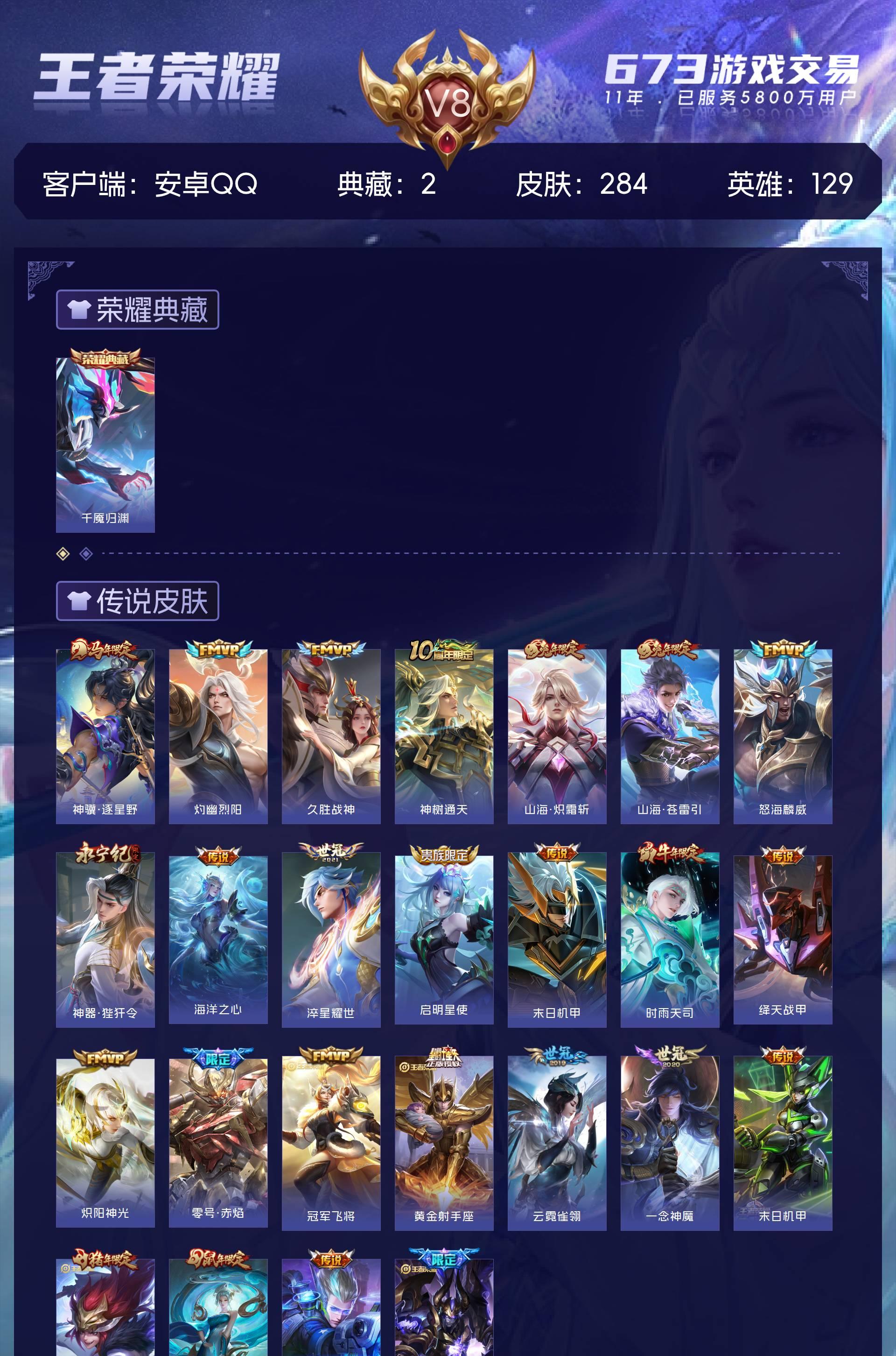 V8 皮肤284 英雄129 永恒钻石 荣耀典藏2 星传说1 传说25