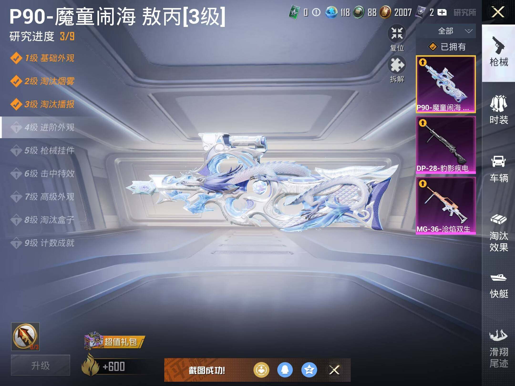 【粉色枪皮等级】:P90-魔童闹海 敖丙(三级),DP-28-豹影疾电(五级),MG-36-沧焰双生(五级)
