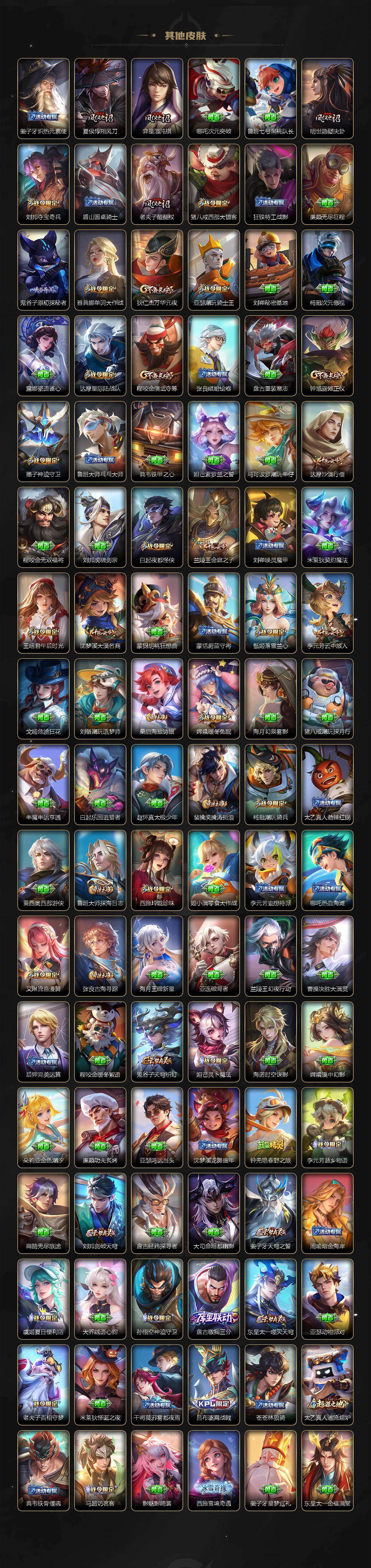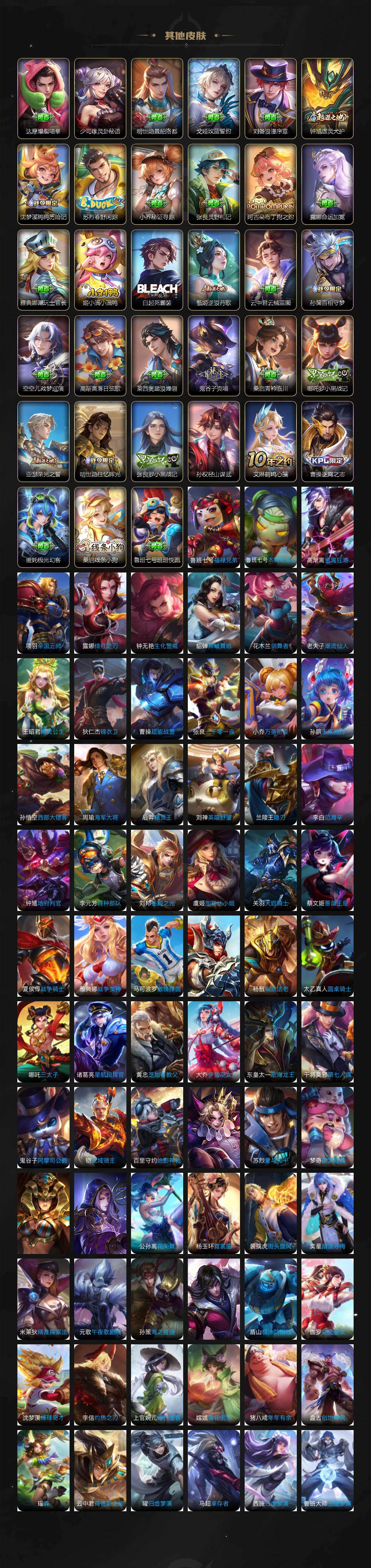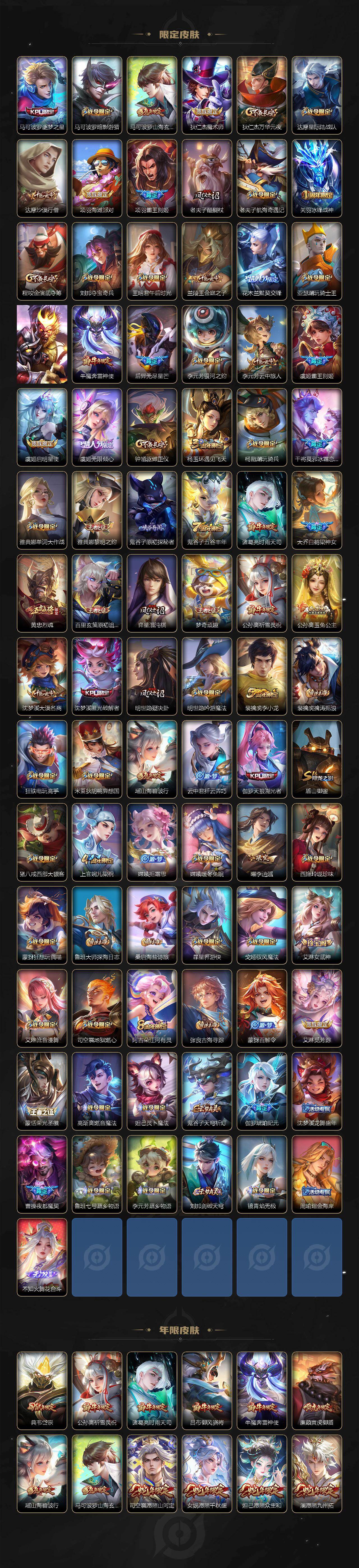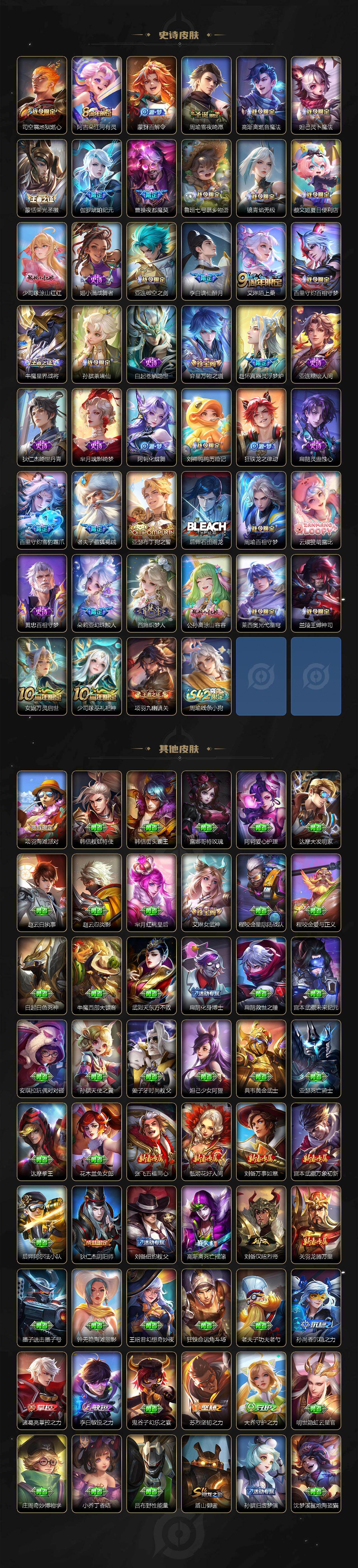 【英雄全皮】:刘禅全皮,达摩全皮,刘邦全皮,孙权全皮,阿古朵全皮,司空震全皮,莱西奥全皮,戈娅全皮,空空儿全皮,影全皮,少司缘全皮
