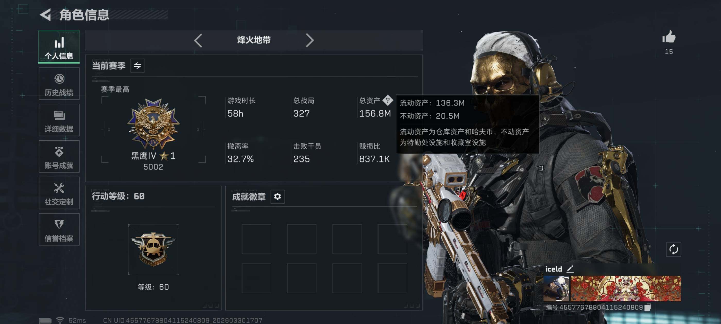 【当日上新-性价比特价号】【双红皮+中额156M.适合小白入游首选.性价比超高账号】【蚀金+水墨】【Q区三端互通】【无二次】YXz9777-特勤处:仓库8级/靶场4级/训练中心6级-总资产156m-哈夫币5439w-烽火等级:60级