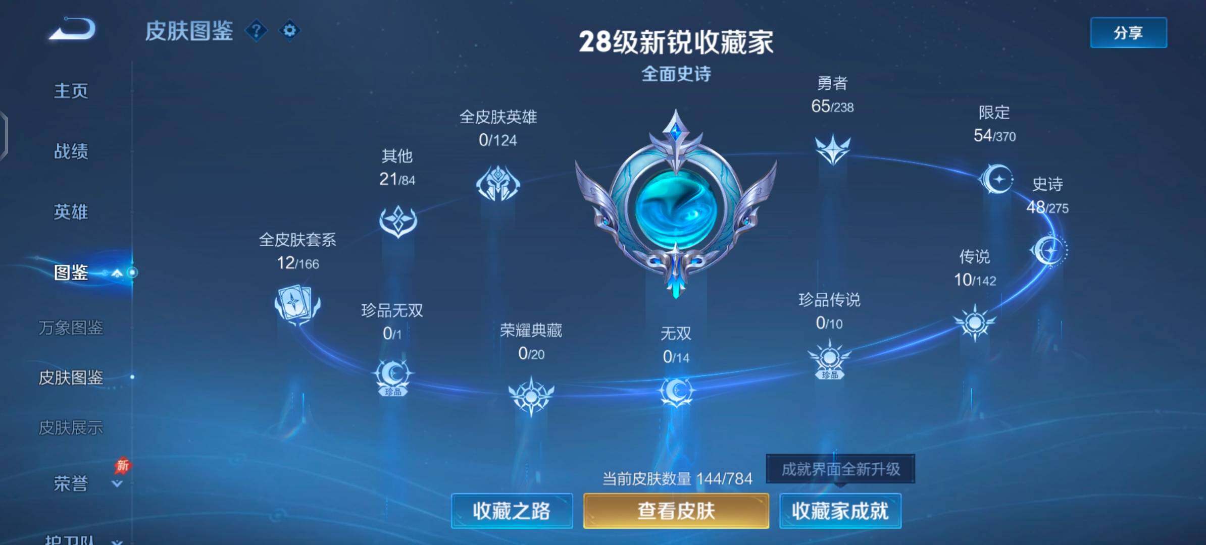 123英雄-144皮肤-6王者印记-132铭文-贵族积分2w