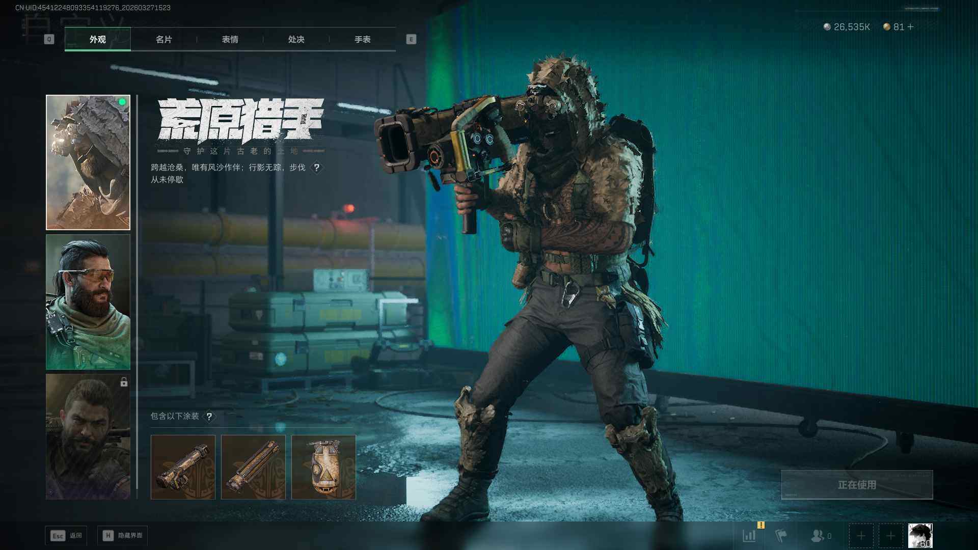总资产(M):76M/哈夫币(K):26535K/传说枪皮数:15/全面战场等级:19_段位:列兵/烽火地带等级:60_段位:铂金/乌鲁鲁-荒原猎手/蛊-不羁人生/近战-暗星/近战-处刑者3级/近战-黑鹰