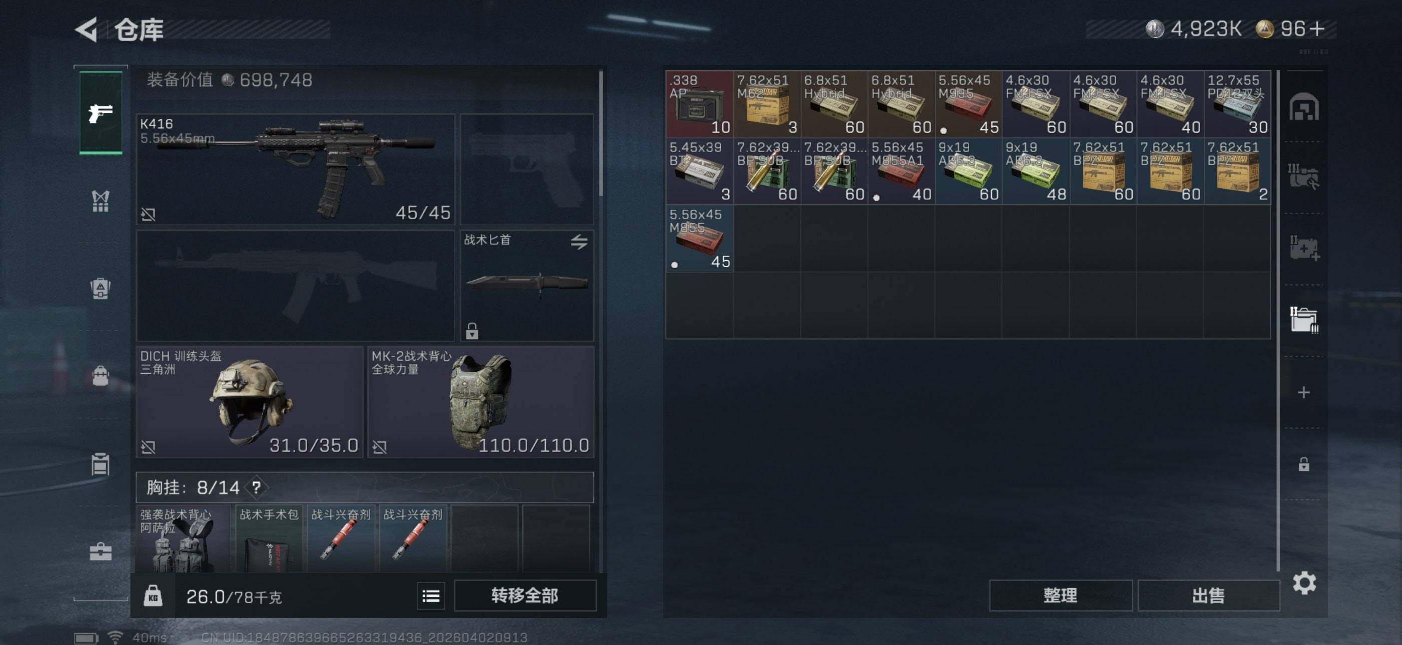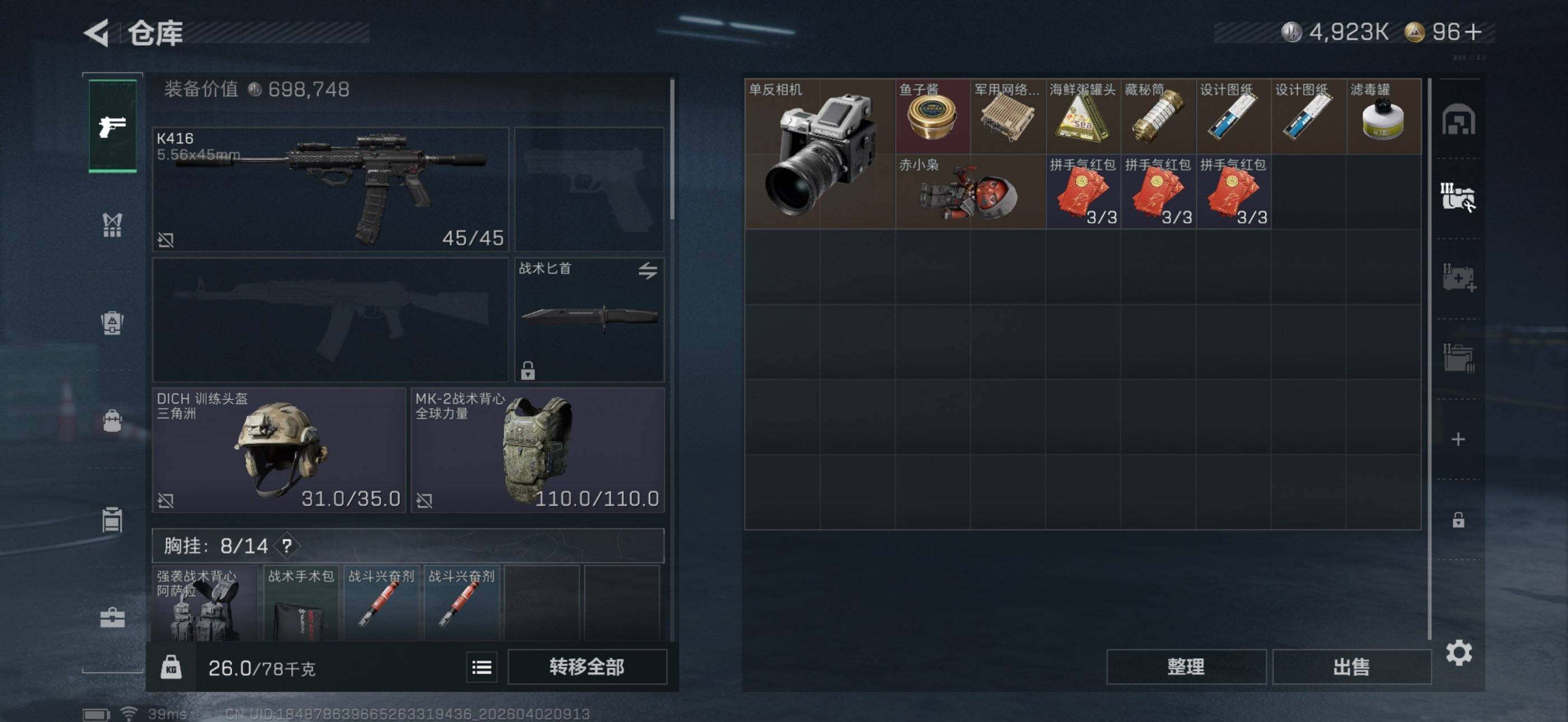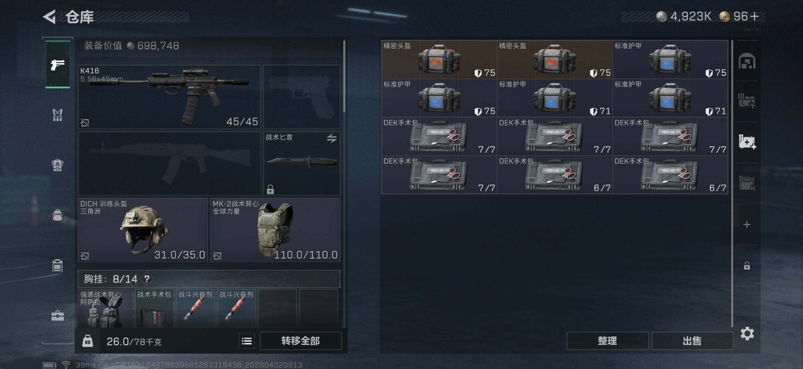 总资产(M):46M/哈夫币(K):4923K/传说枪皮数:3/全面战场等级:1_段位:无段位/烽火地带等级:54_段位:钻石/近战-黑鹰/