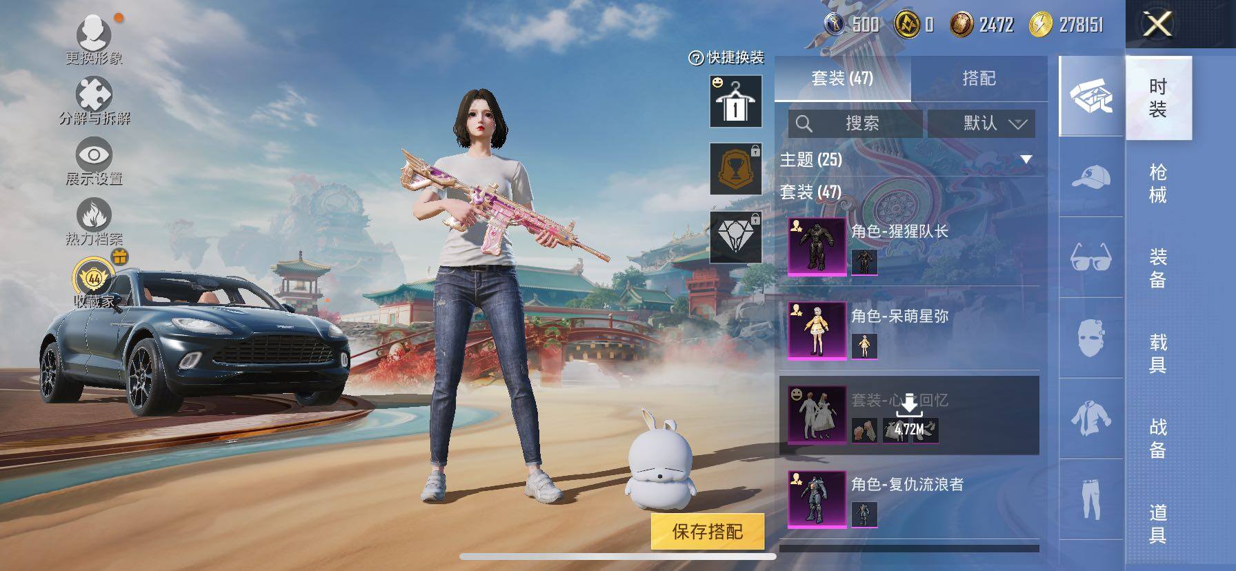 13粉装-2特效枪-3载具-3粉色飞行器-32980热力值-2王牌印记-47套装-91枪皮