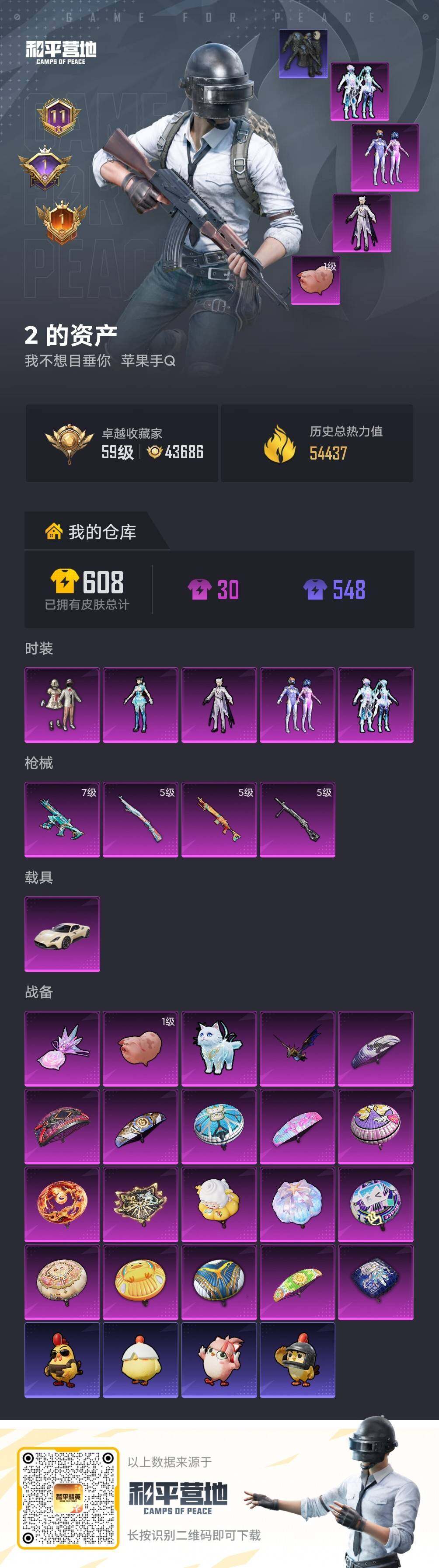 5粉装-4特效枪-1载具-4粉色飞行器-54437热力值-11王牌印记-116套装-177枪皮