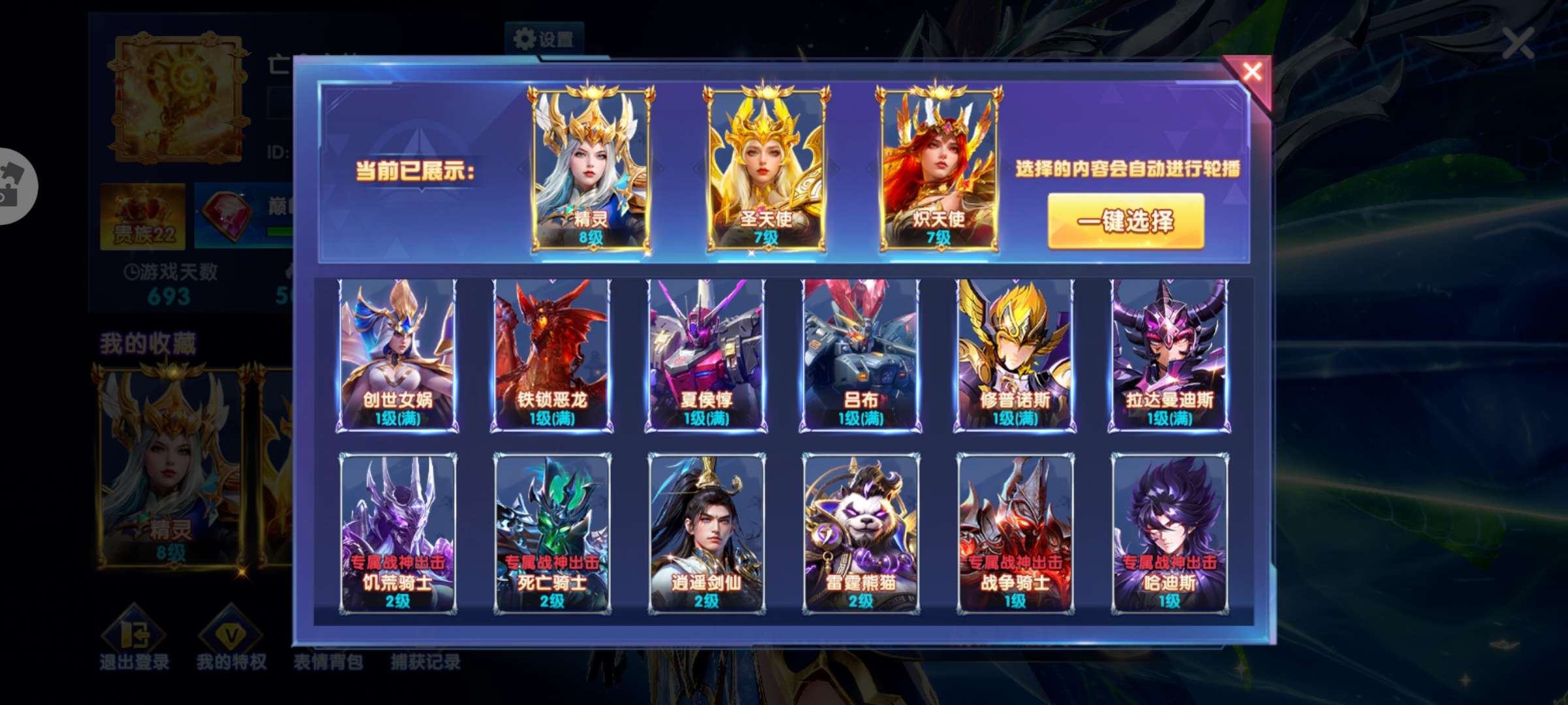 百天新号,天使满,机甲,西游满,活动容易拿第一。魅魔出战,真心累了,给时间充裕的。还有些点券换绑一切
