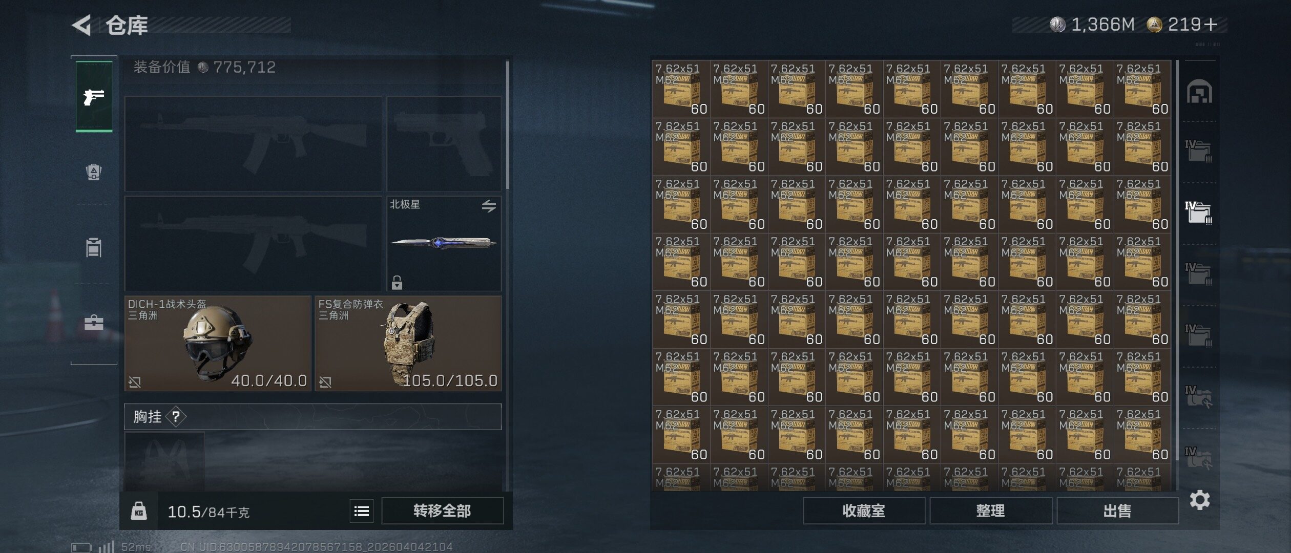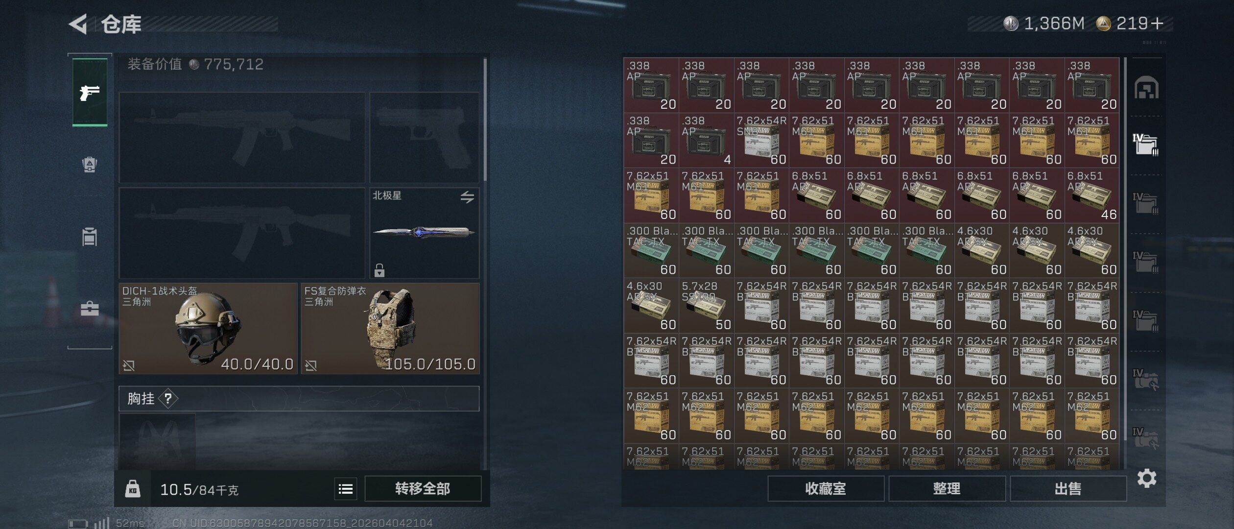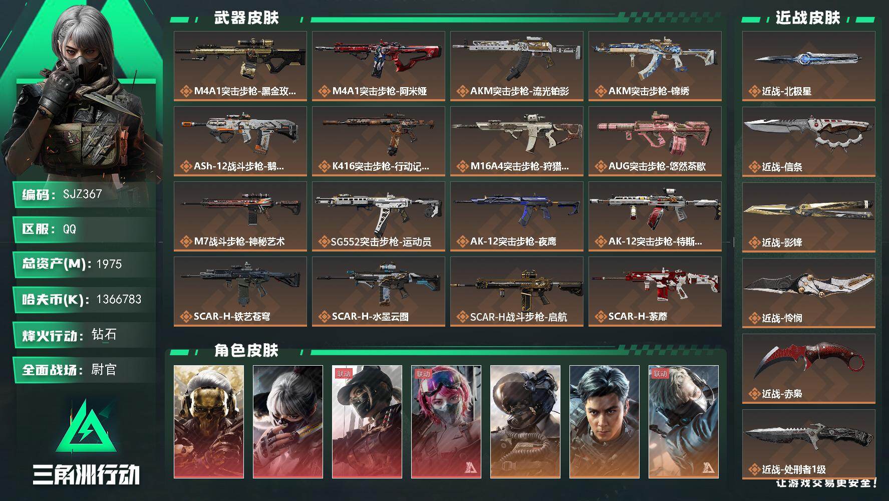 1975m总资产-1366783k哈夫币-60烽火等级-钻石-50战场等级-尉官