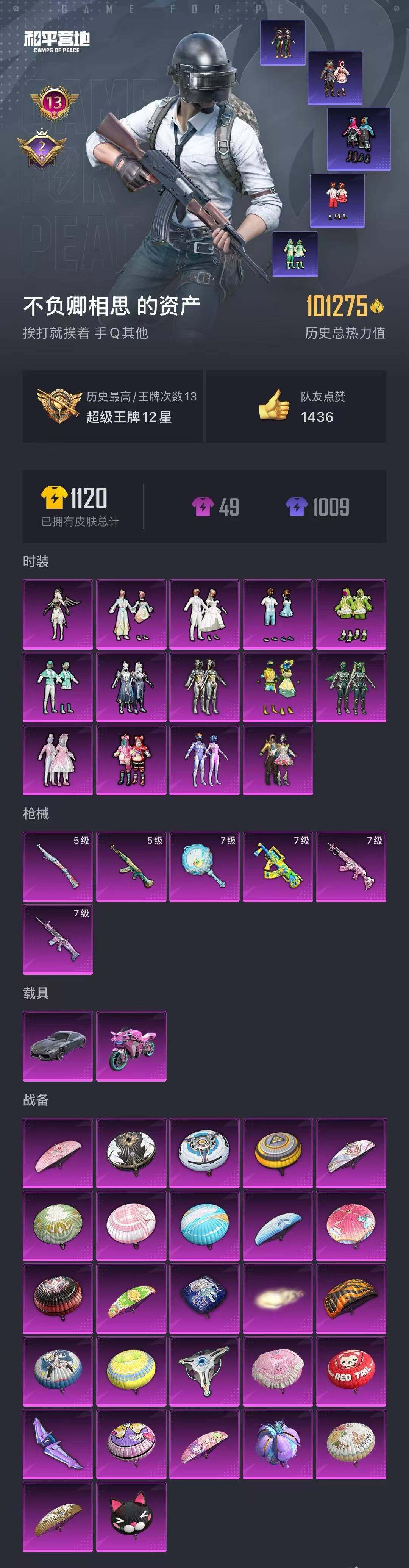 安卓 手Q-14粉装-6特效枪-2载具-3粉色飞行器-101275热力值-13王牌印记-235套装-282枪皮