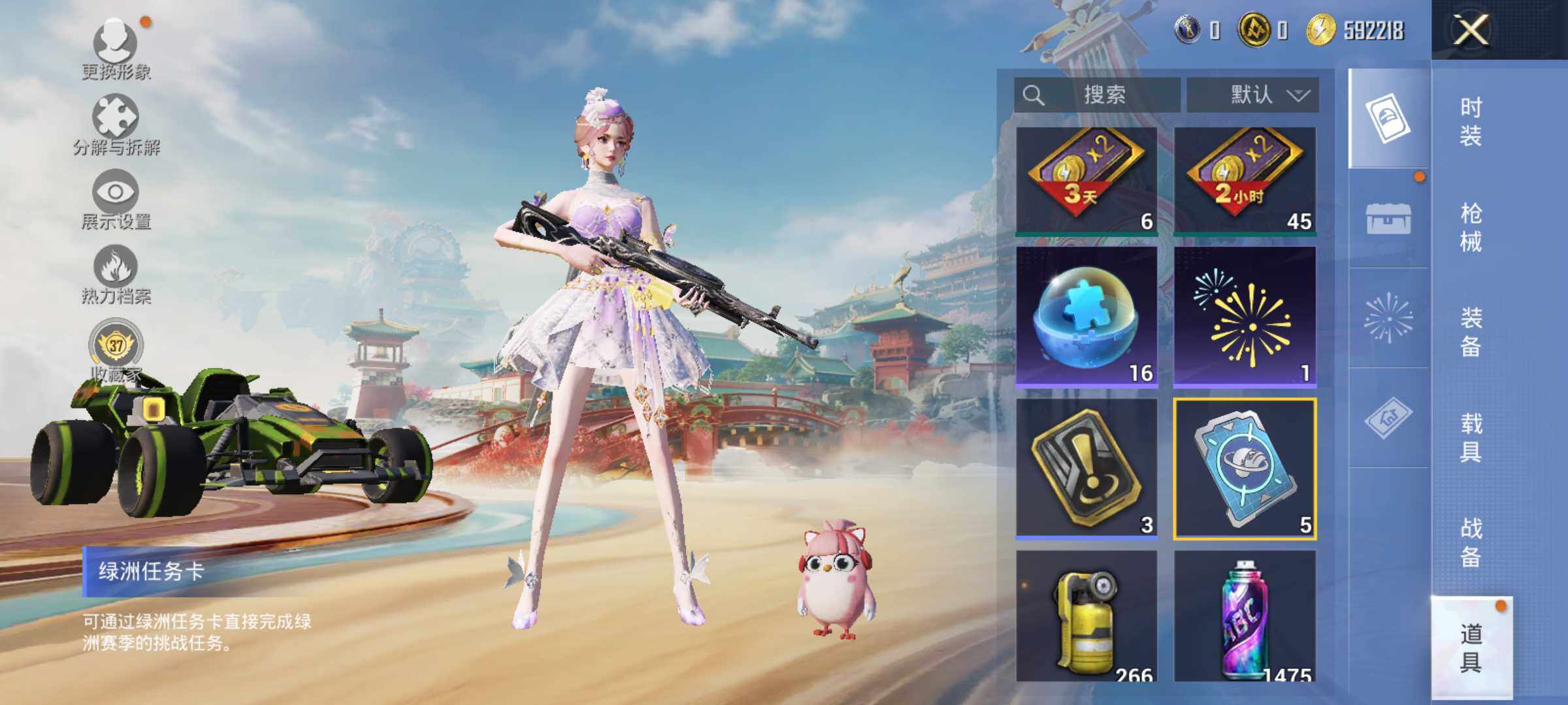1粉装-3特效枪-1载具-1粉色飞行器-27907热力值-2王牌印记-65套装-95枪皮