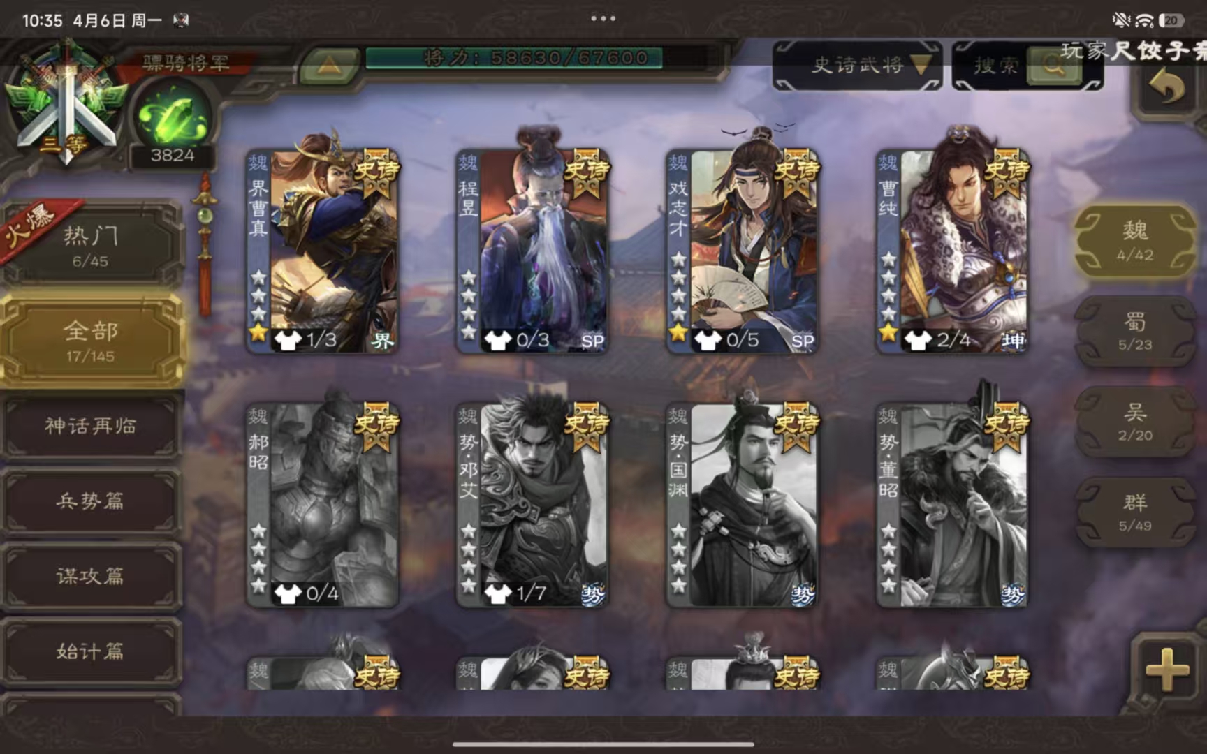 史诗武将数量: