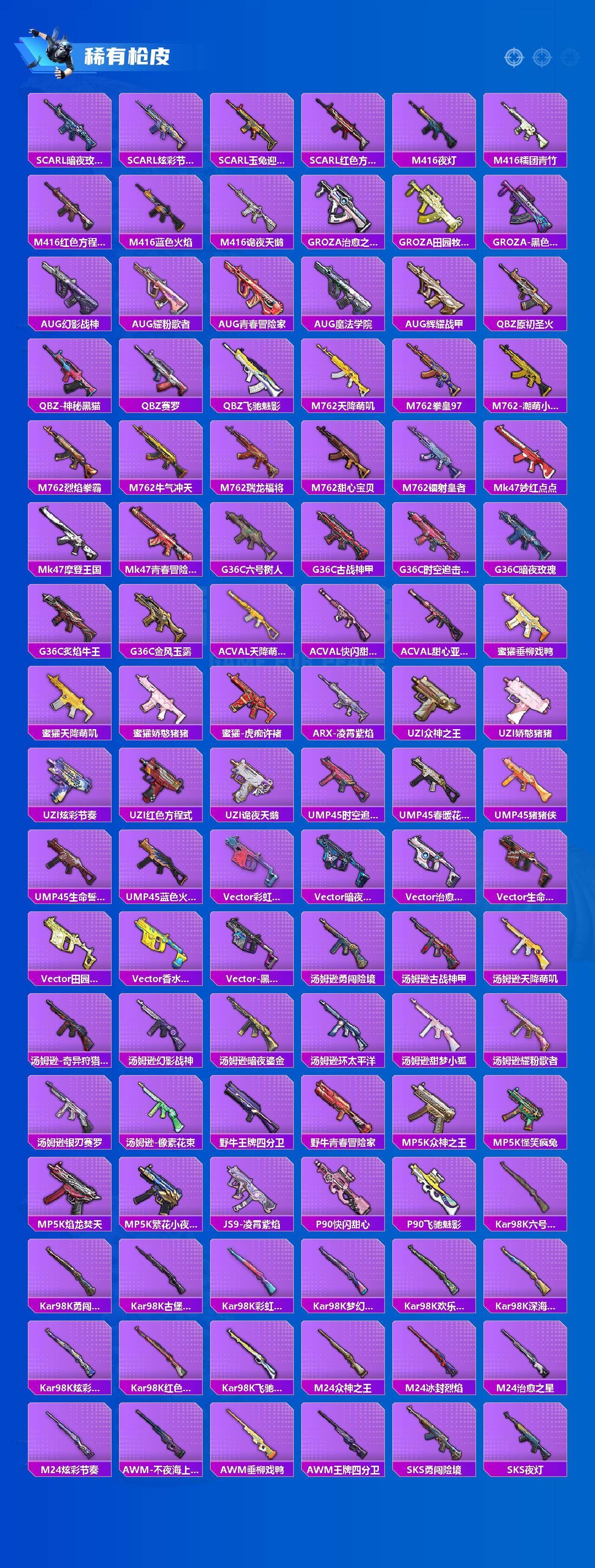 14粉装-7特效枪-3载具-1粉色飞行器-94433热力值-19王牌印记-213套装-288枪皮