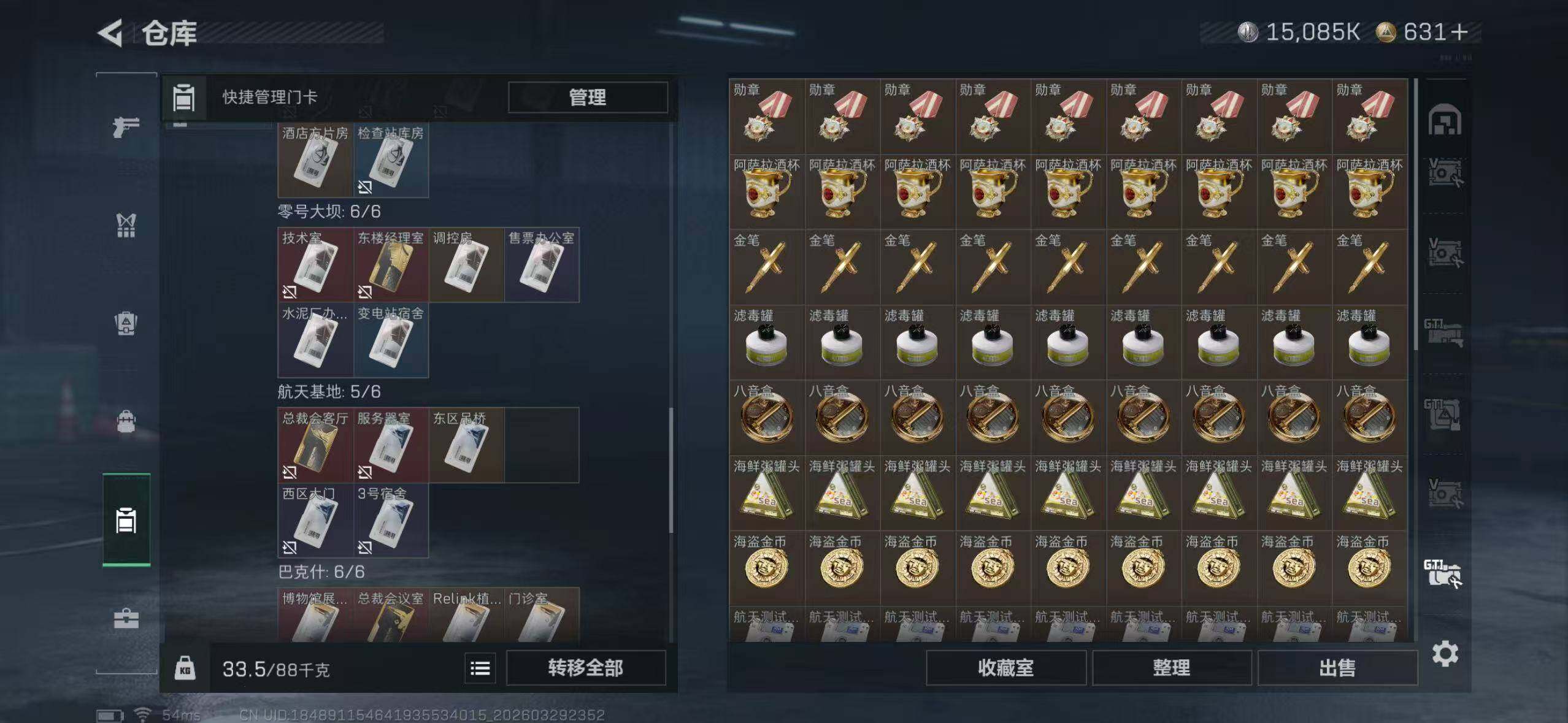 【SJ1594】299m总资产-15085k哈夫币-60烽火等级-青铜-50战场等级-校官