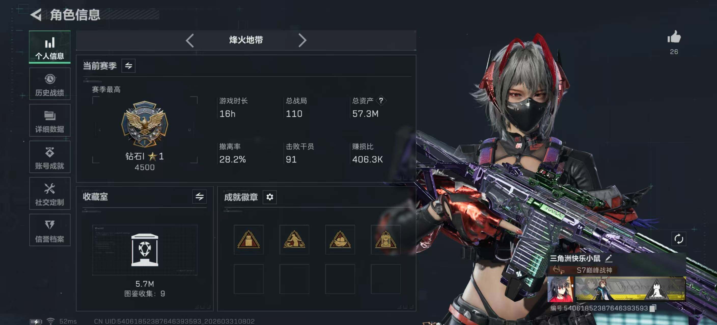 57m总资产-4210k哈夫币-60烽火等级-钻石-44战场等级-军士长
