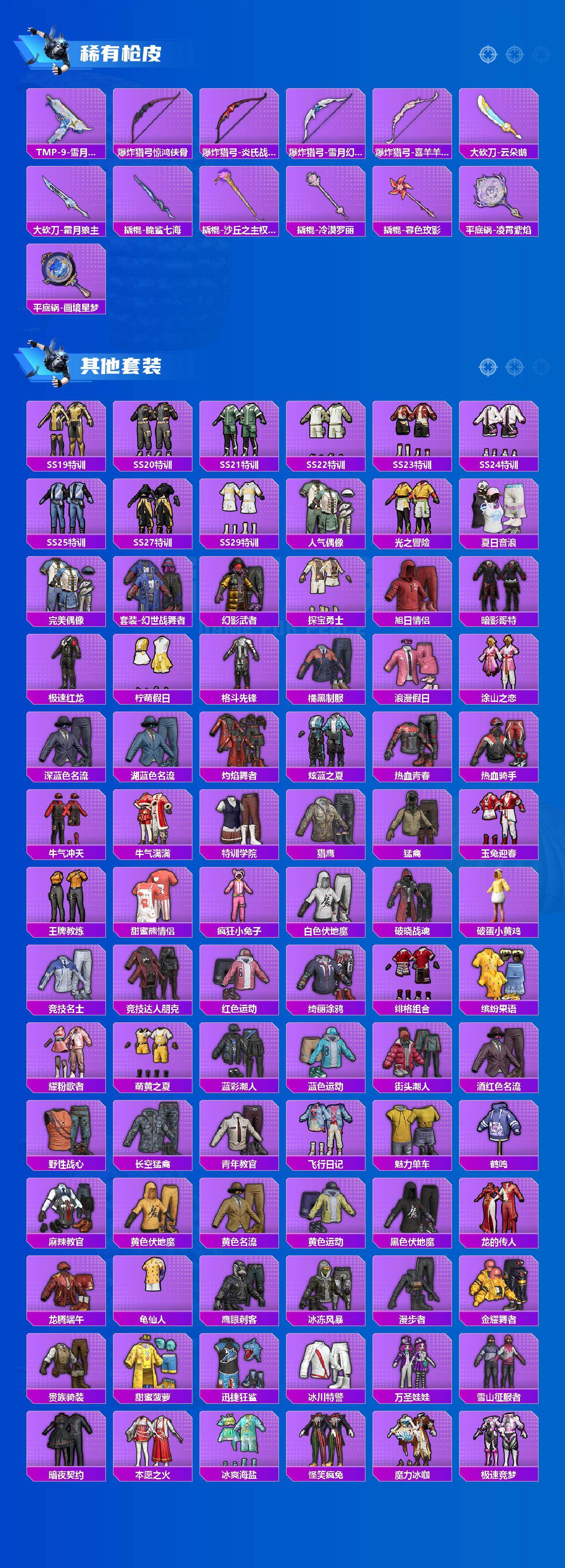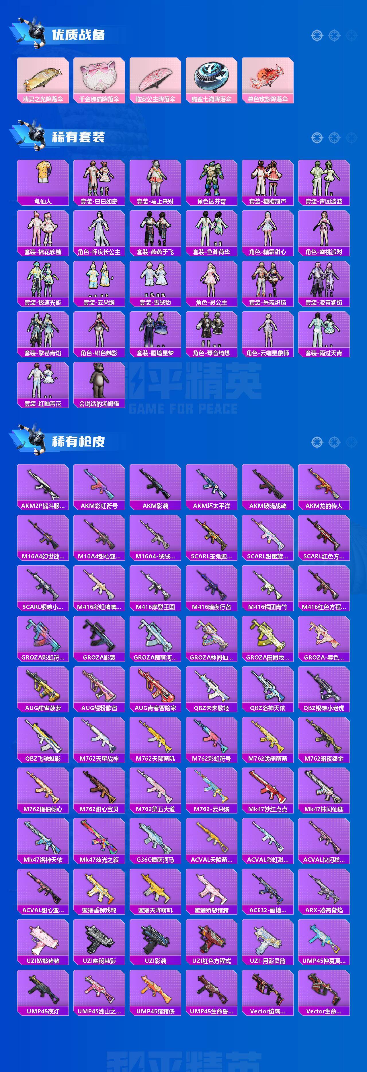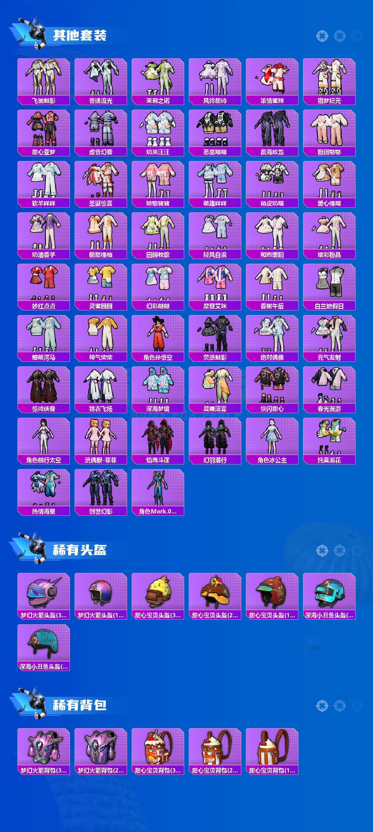 【热门品类】:粉装-梦幻火箭,粉装-缤纷油彩,套装-都市猎人,套装-小丑鱼,角色-军刀雅典娜,套装-龟仙人,套装-暗影哥特,角色-Mark.06,撬棍-龙胆亮银枪