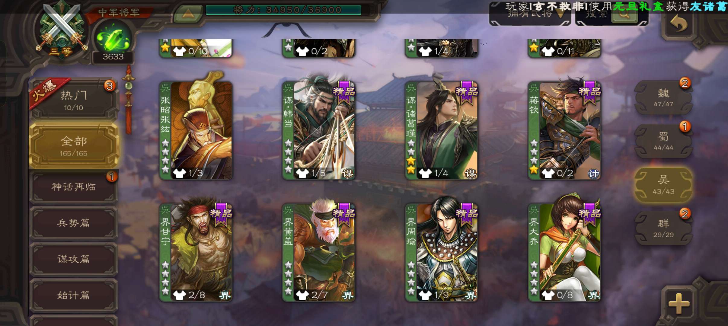 中军将军,3600将魂,玉龙回廊东大宝神赵云曹婴界黄忠程昱,天工谋诸葛瑾,神吕蒙甘夫人谋韩当165将