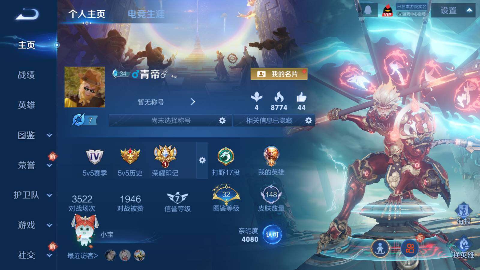 V5-永恒钻石IV段位-125英雄-148皮肤-3传说-37史诗