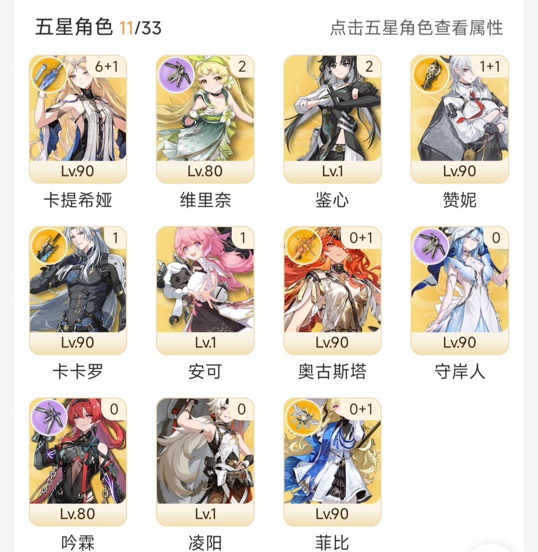 鸣潮成品号6+1卡提希娅,01奥古斯塔,00岸宝,11赞妮,01菲比,00吟霖,二链维里奈 单绑手机