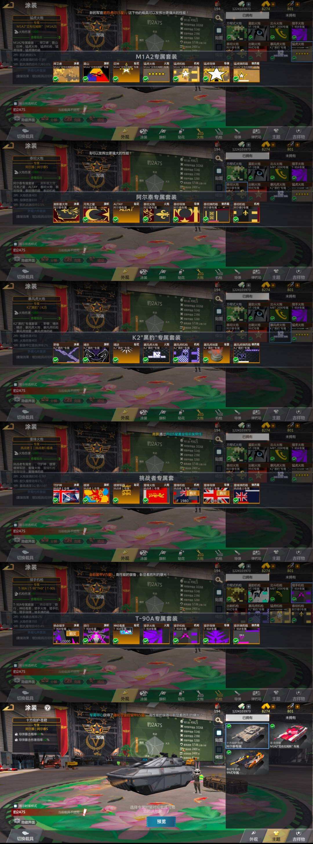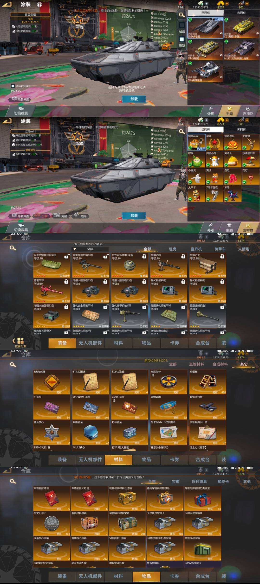 准将a7s阿尔泰m1a2 盛世军神套 凯奶古龙朱 自己看图 输出抗伤40w 15w金