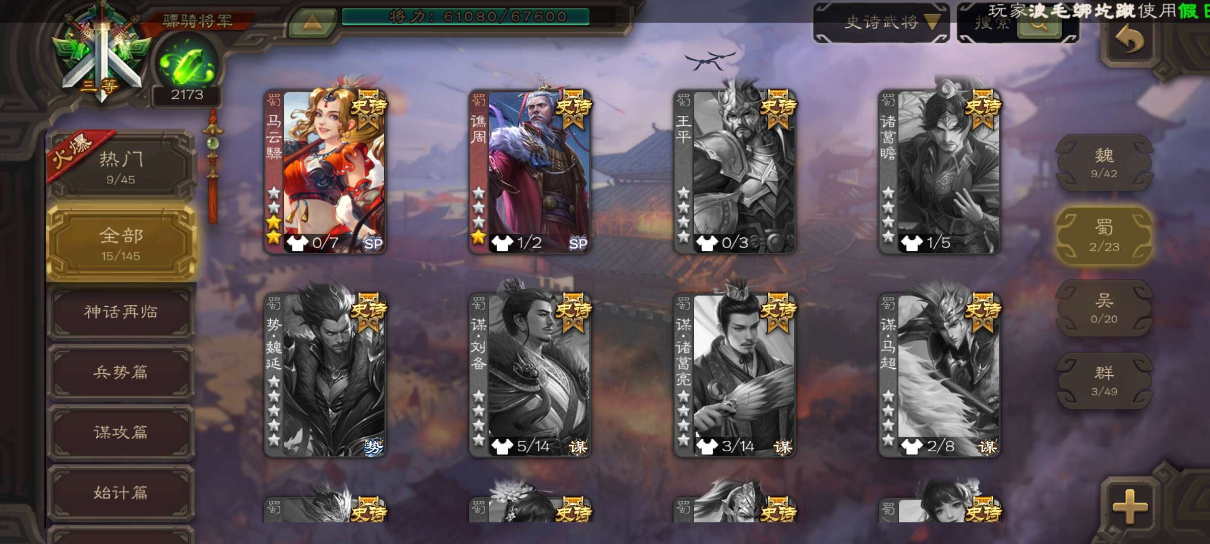 史诗武将数量: