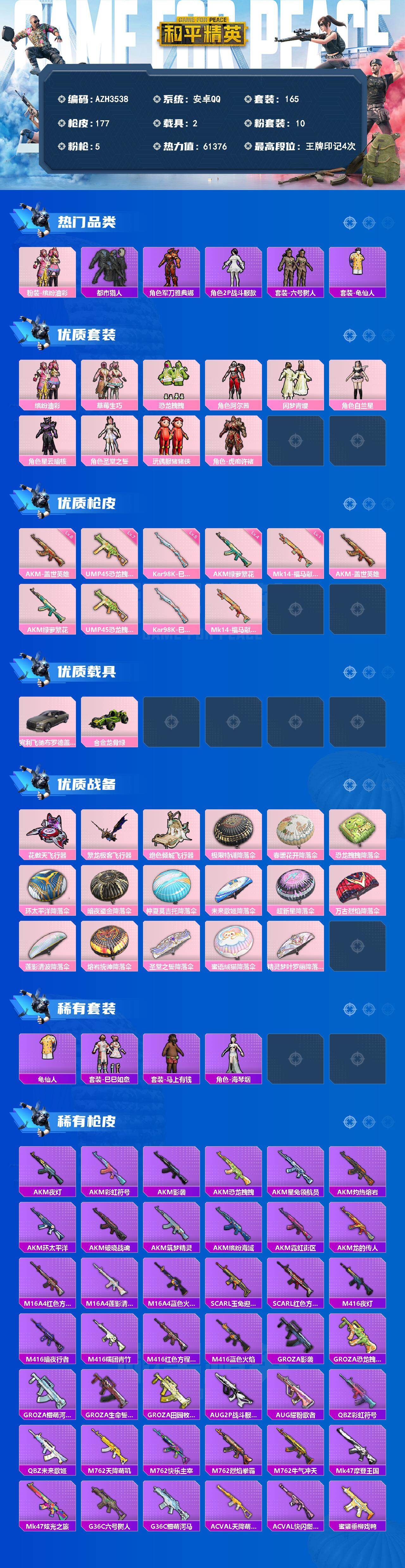 【AZH3538】安卓 手Q【都市猪脸草莓生巧 满级恐龙拽拽UMP45 粉熊背包 2载具】10粉装-5特效枪-2载具-3粉色飞行器-61376热力值-4王牌印记-165套装-177枪皮