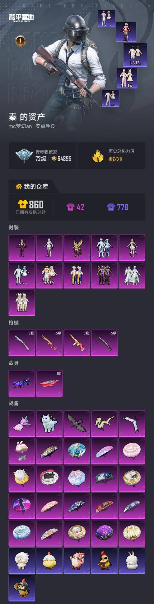 【AZH2874】安卓 手Q【荧海星豚 焦糖拿铁 2载具1僚机】11粉装-4特效枪-2载具-5粉色飞行器-86229热力值-1王牌印记-149套装-252枪皮