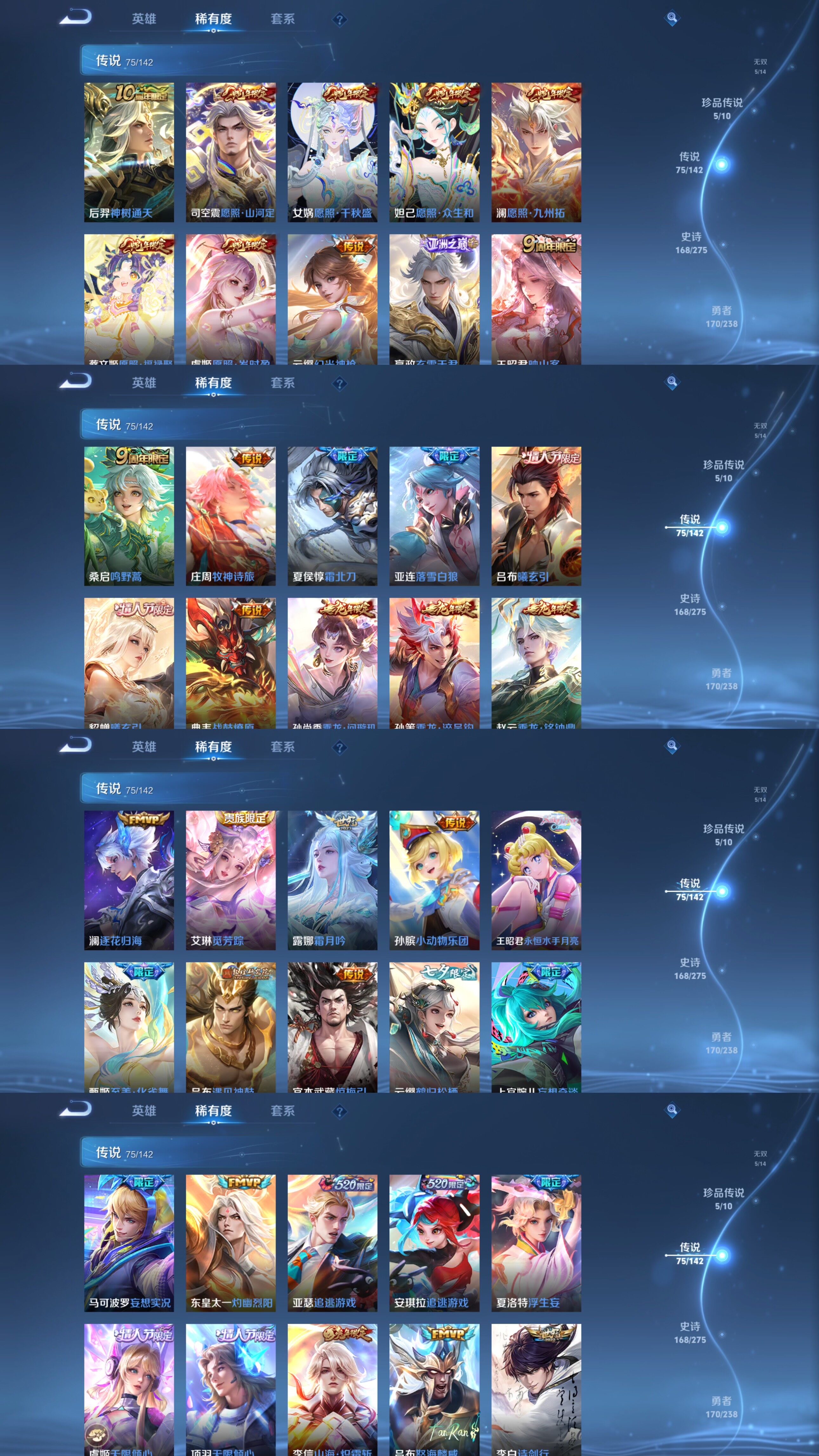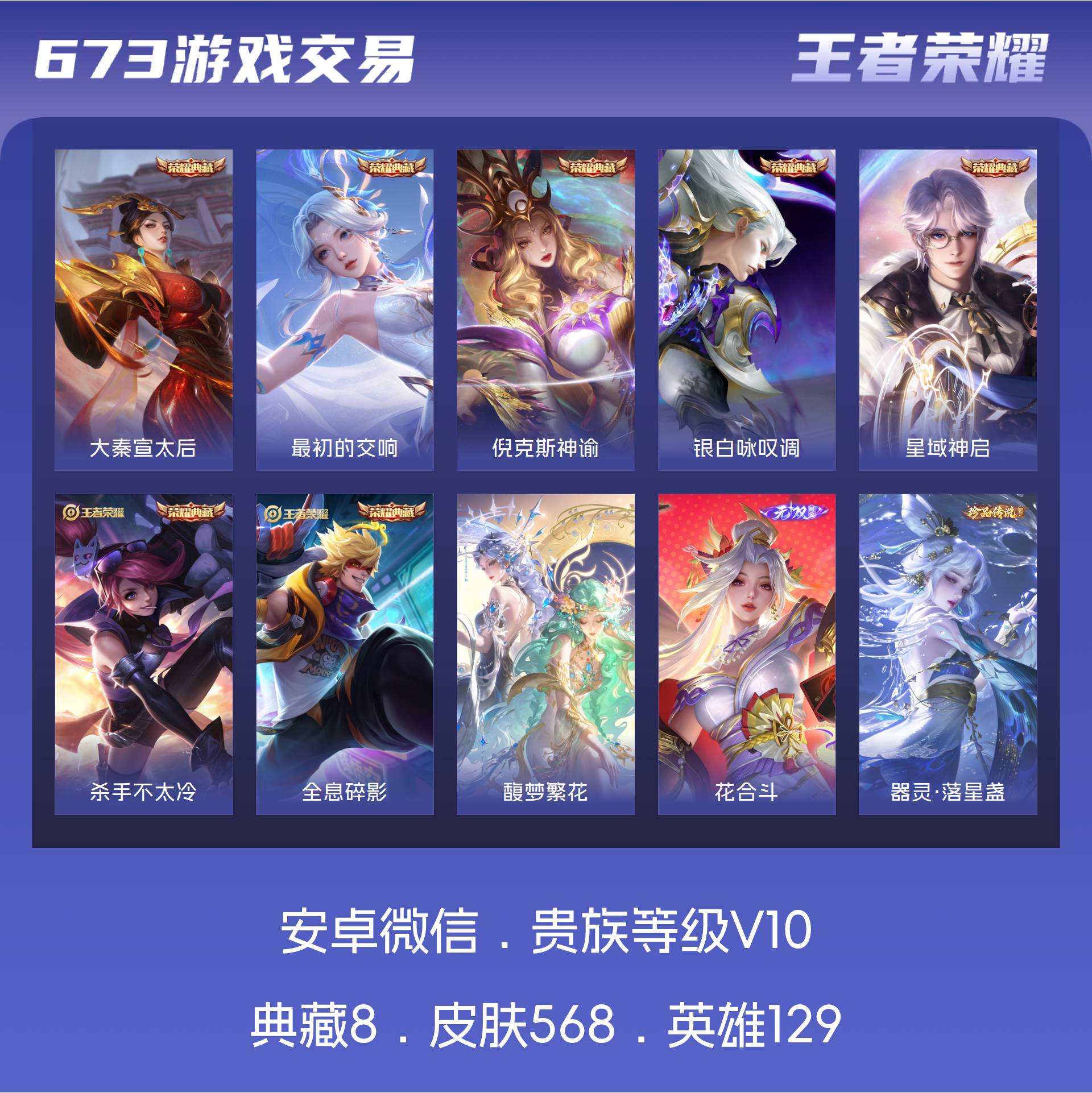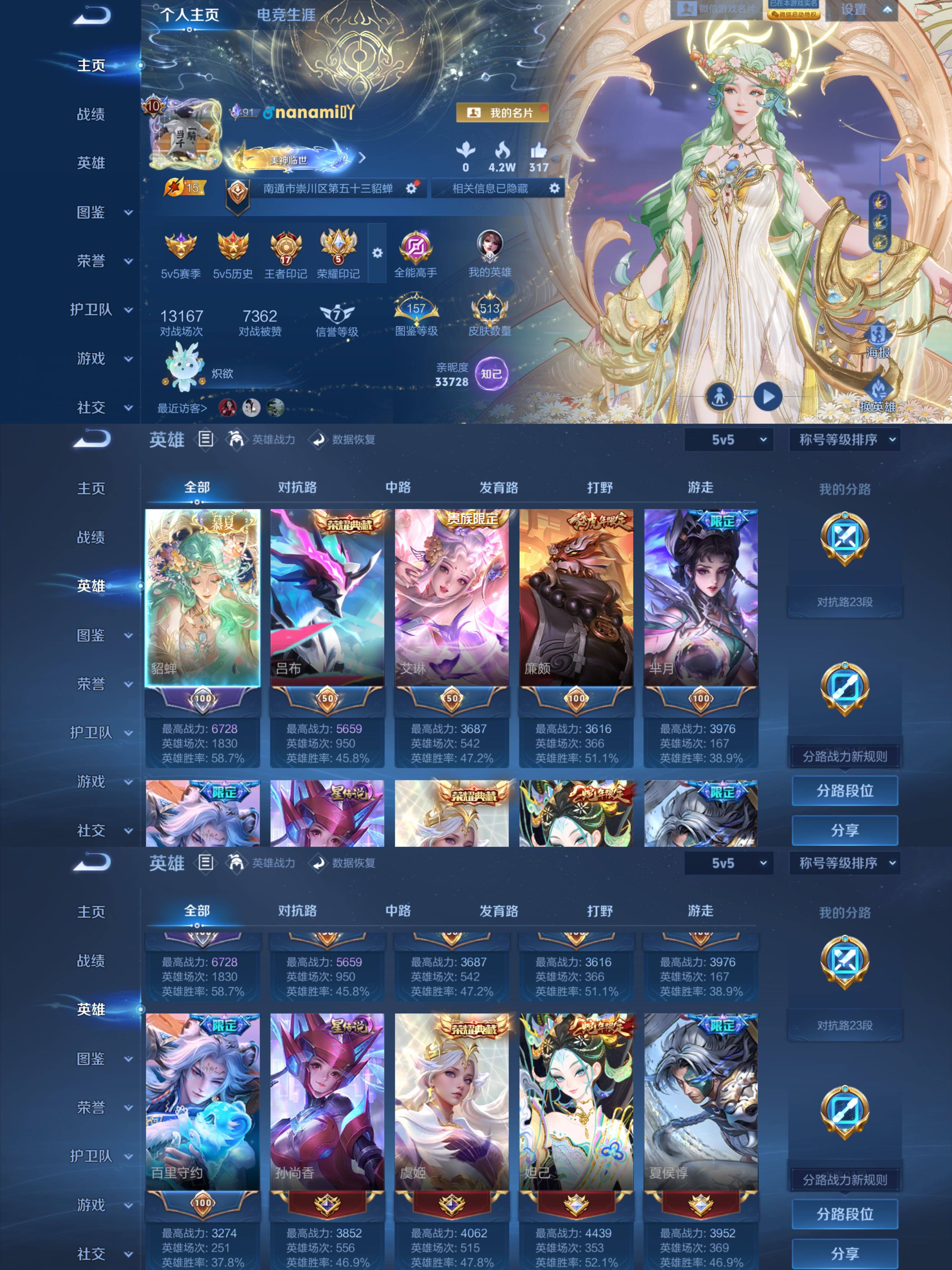 苹果WX-社交介意勿拍!!连体和平!V10-129英雄-513皮肤-9典藏皮肤-1典藏英雄-1珍品无双-5无双-5珍品传说-75传说-167史诗-10星元-60按键-6天幕