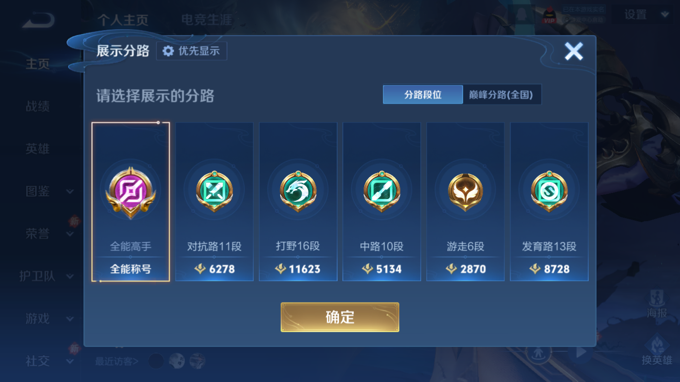 韩信典藏+踏浪归!白虎志!皮肤数量240印记总数8V7非凡王