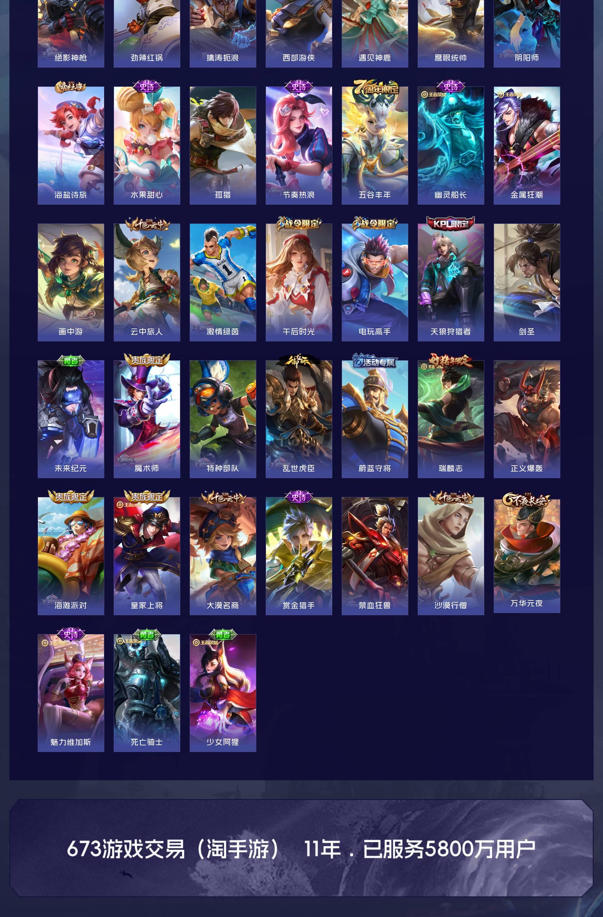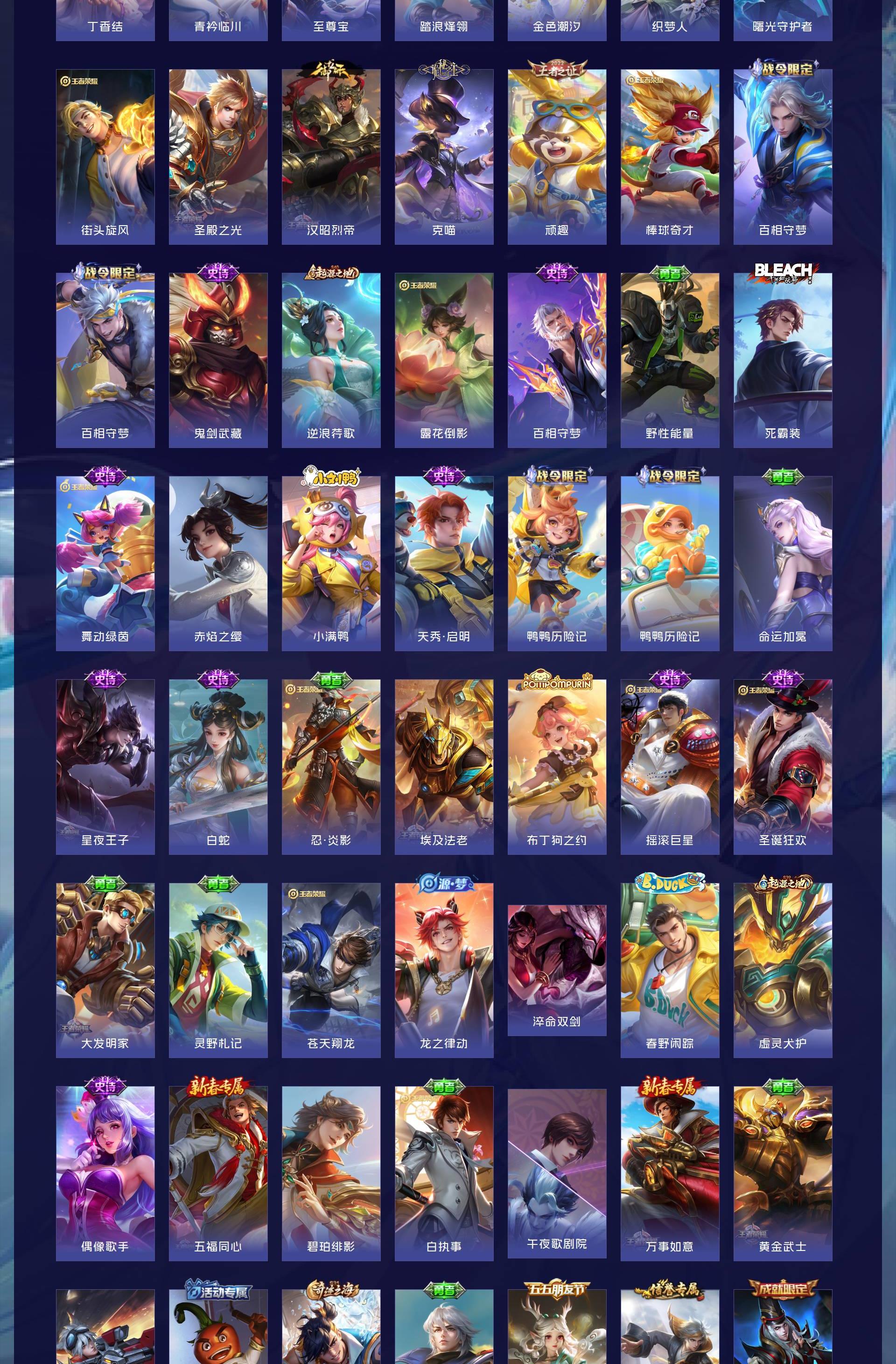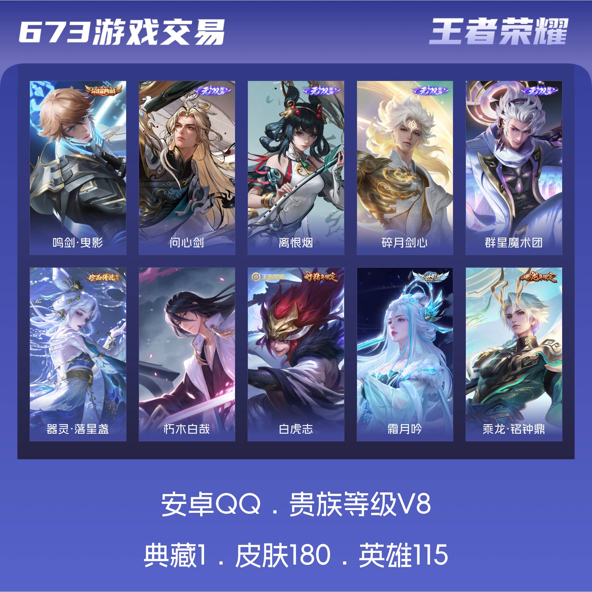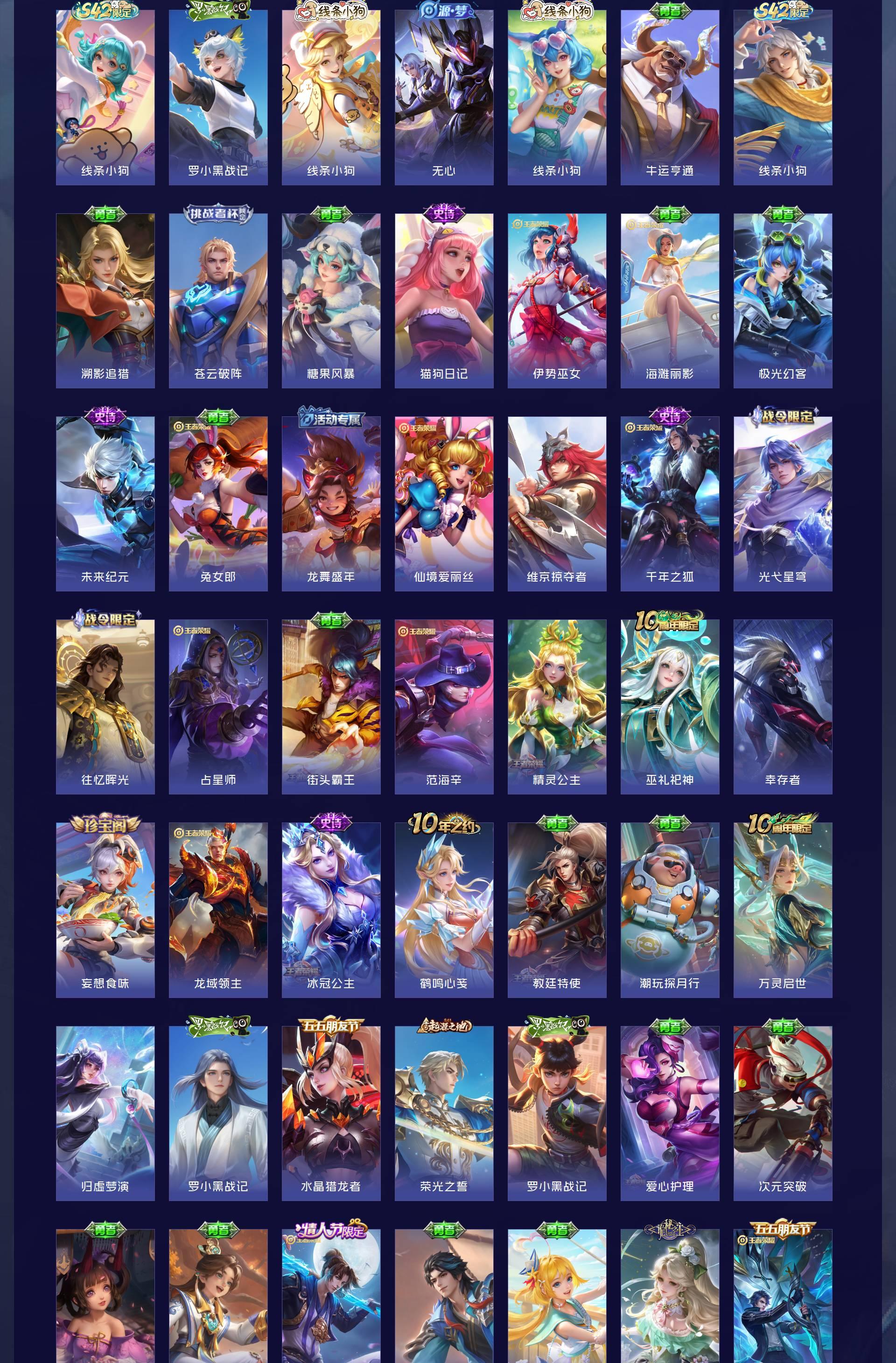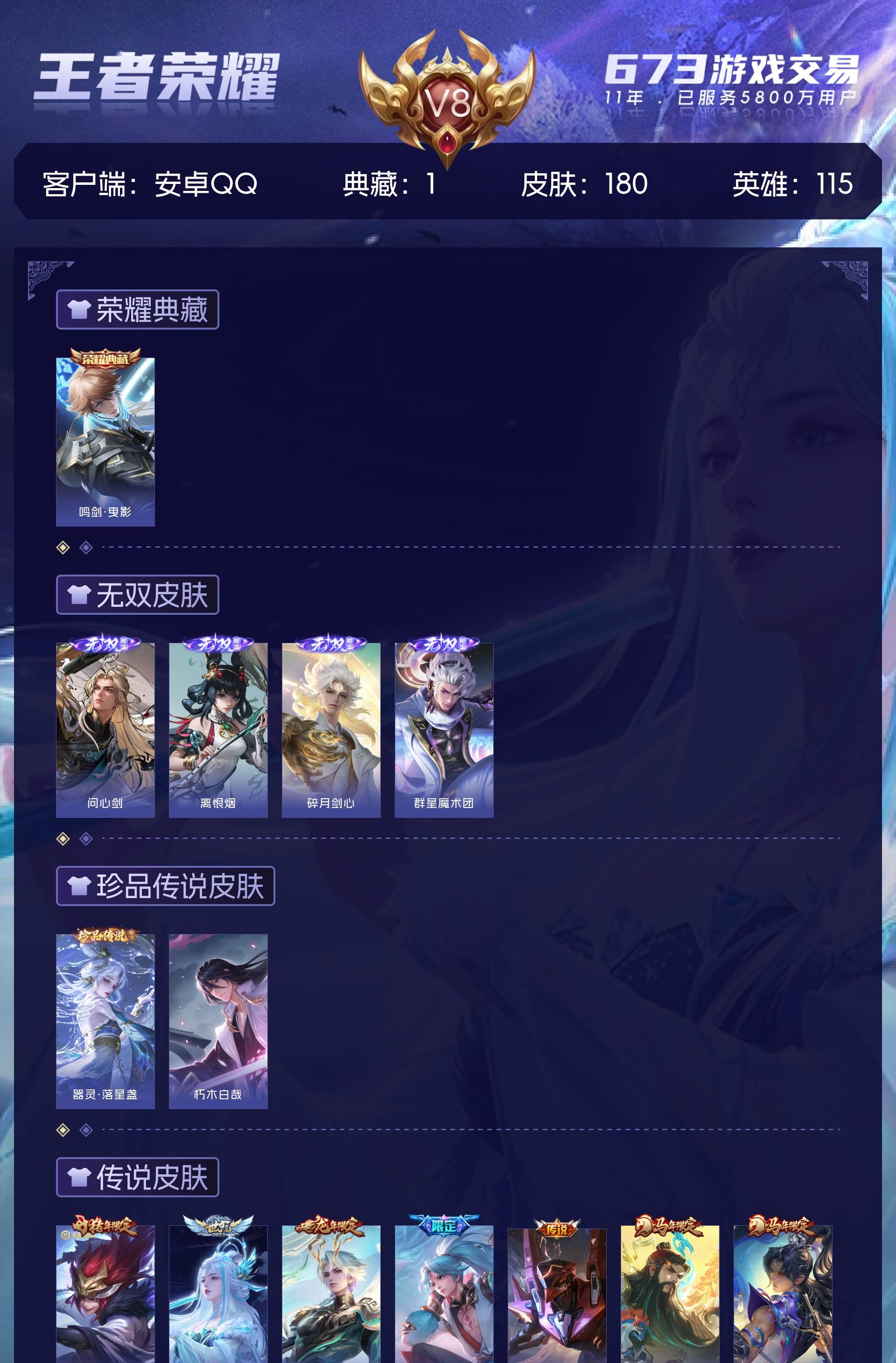 V8 皮肤180 英雄115 至尊星耀 荣耀典藏1 无双皮肤4 珍品传说2 星传说3 传说33