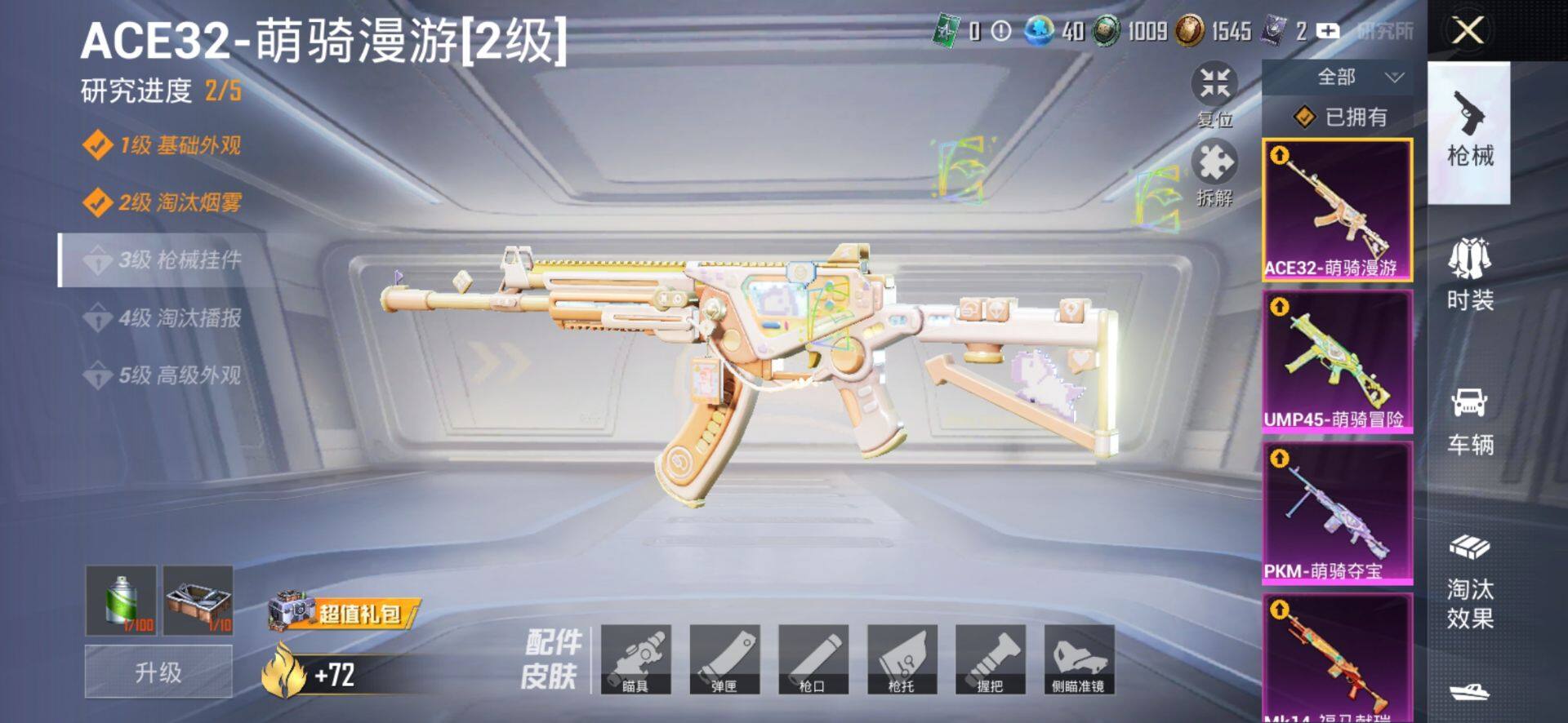 【粉色枪皮等级】:M416-电玩时刻(五级),M416-墨龙九天(三级),ACE32-