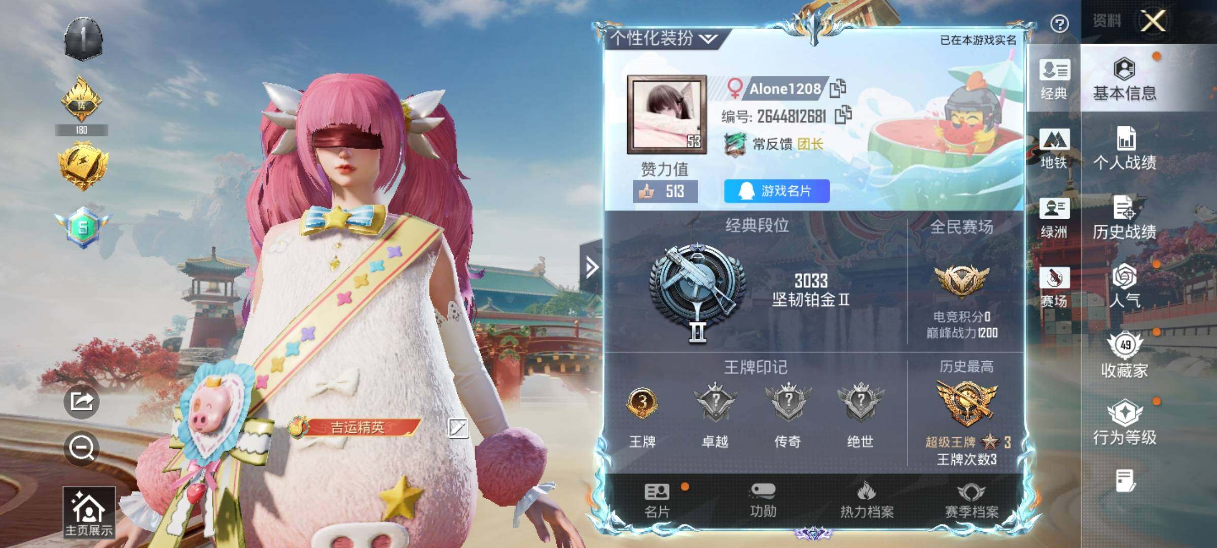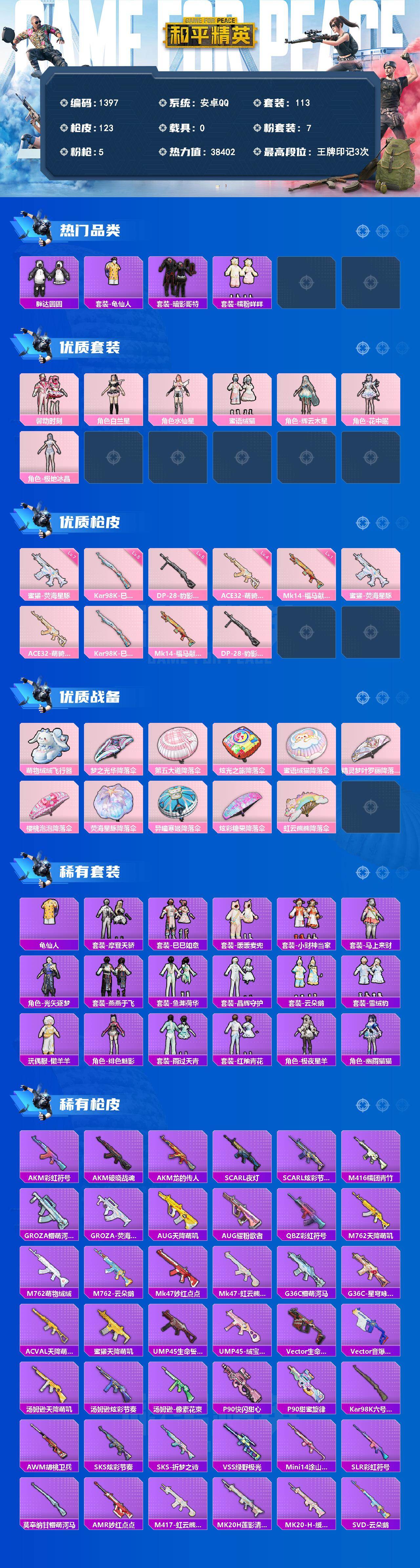 【7粉装5粉枪 蜜獾-荧海星豚(七级) 粉装-蜜语绒猫 暗影哥特 糯粉咩咩 花中眠 极地冰晶】安卓 手Q-7粉装-5特效枪-0载具-1粉色飞行器-38402热力值-3王牌印记-113套装-123枪皮