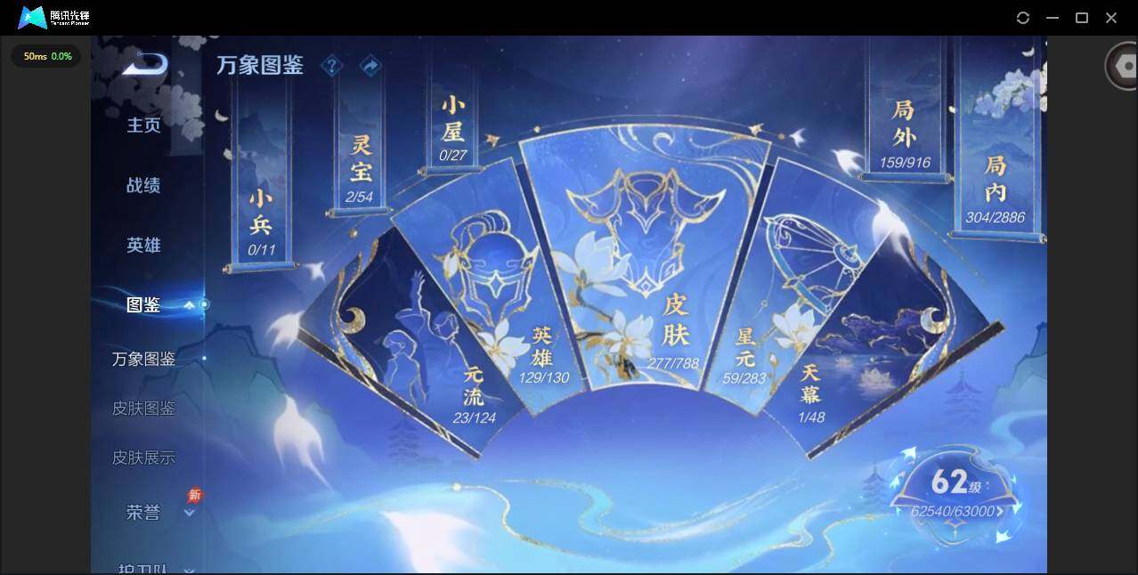 60/实名: 可修改 贵族等级: V8 英雄数: 129 皮肤数: 277 荣耀水晶: 杀手不太冷 星传说: 未来机甲,幽冥火 传说皮: 末日机甲-孙尚香,地狱火,零号·赤焰,胖达荣荣,李逍遥,记忆之芯,澜逐花归海,幻光神枪,神树通天 限定皮: 冰锋战神,遇见飞天,李小龙,游园惊梦,梁祝,御风骁将,岱宗,神威,飞衡,太华,逐梦之影,天狼绘梦者,白虎志,朱雀志,至尊宝,大