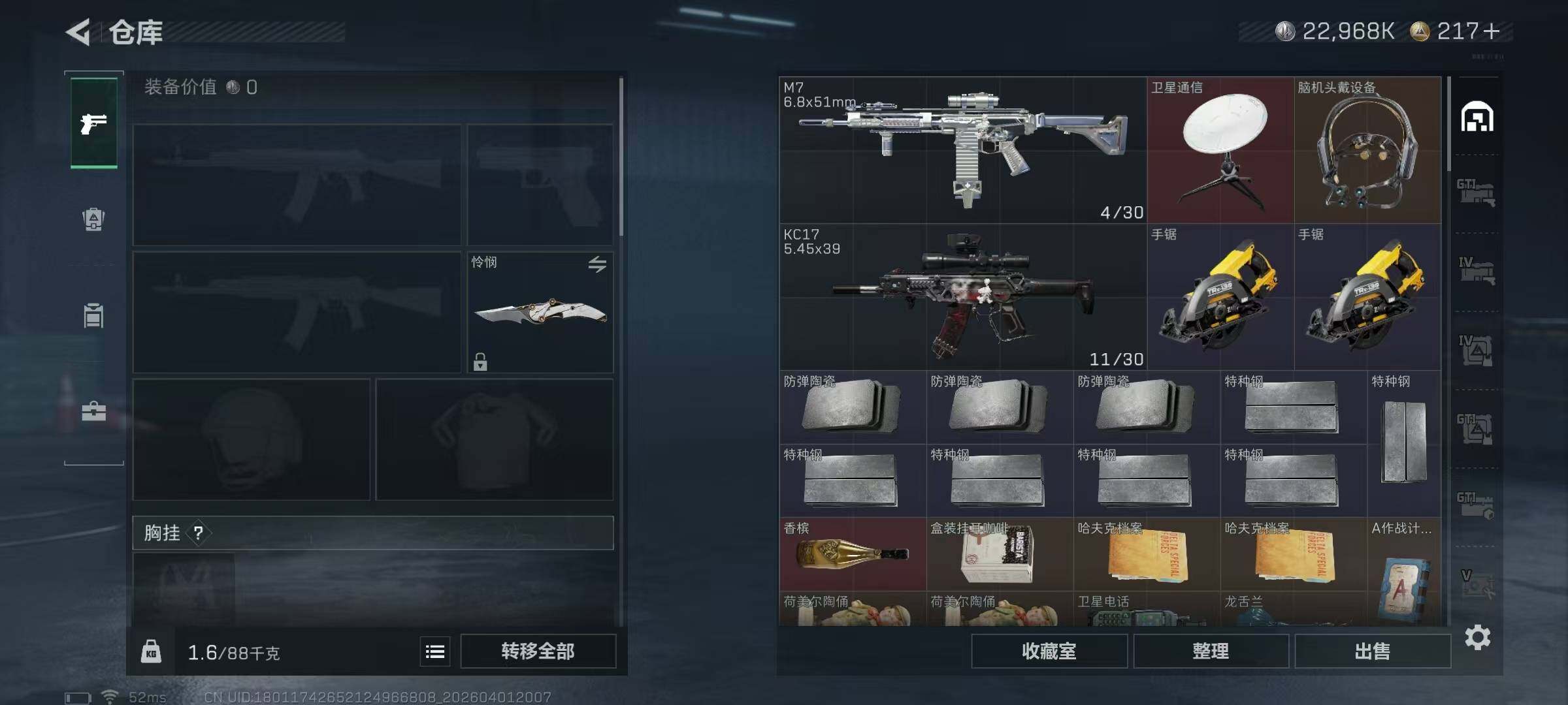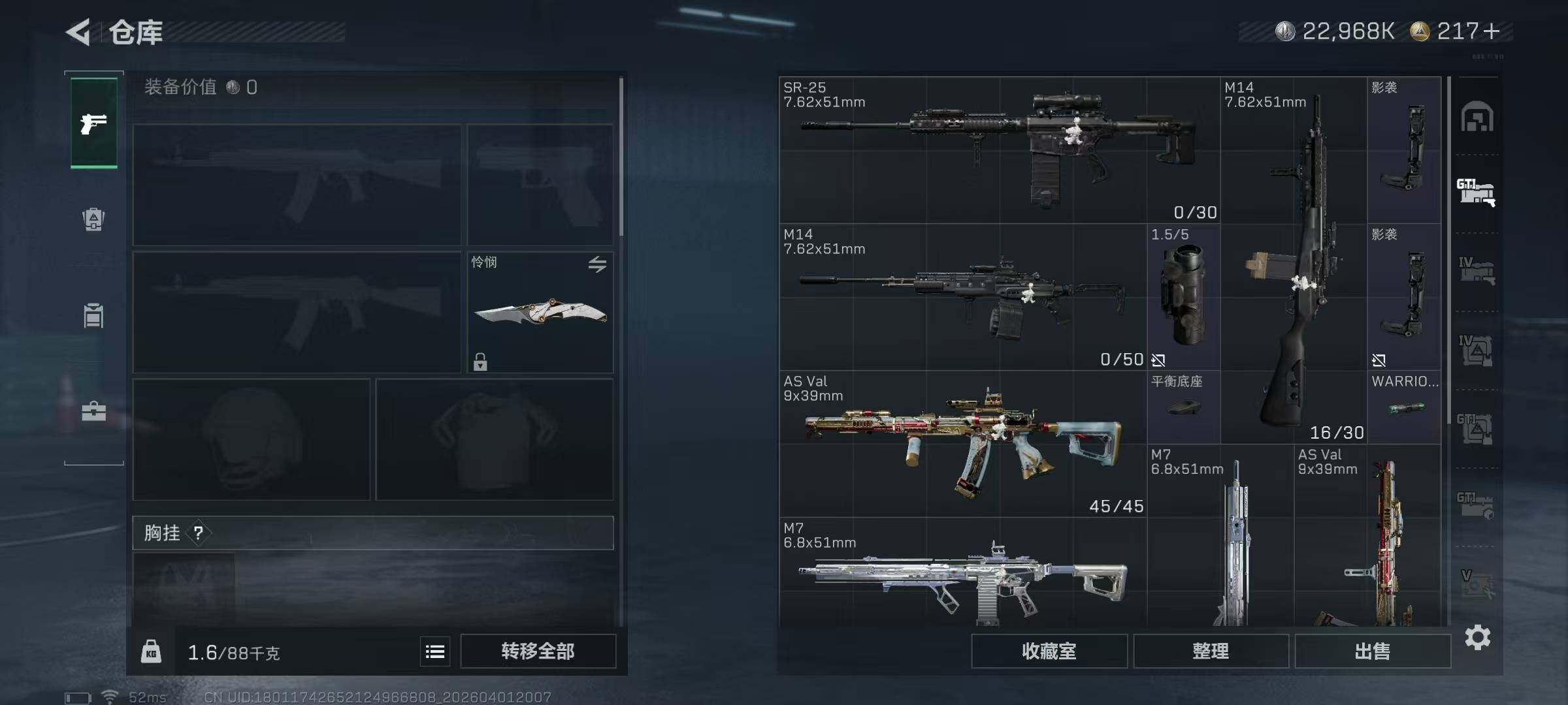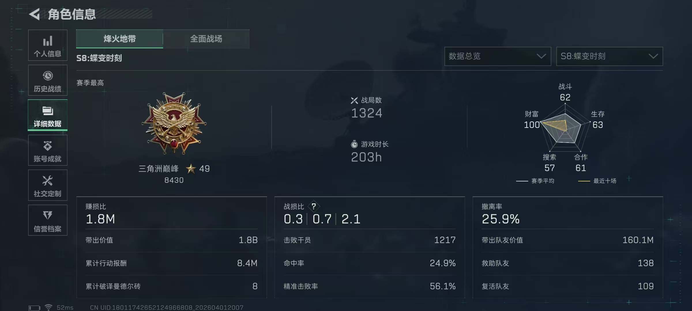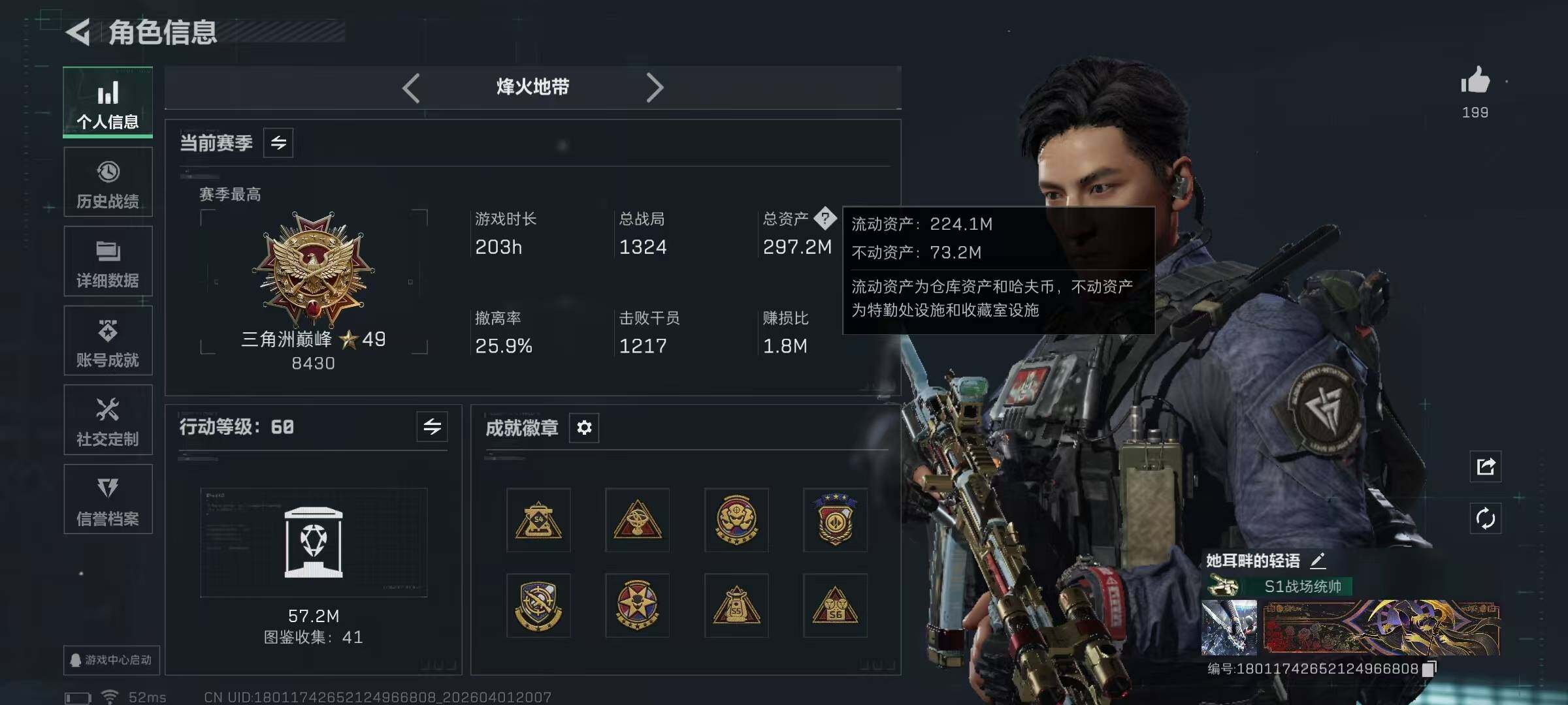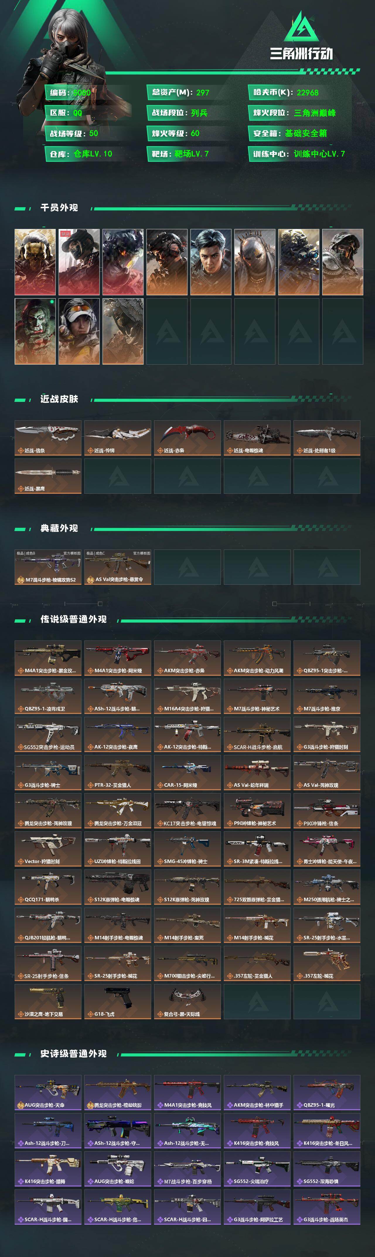 297m总资产-22968k哈夫币-60烽火等级-三角洲巅峰-50战场等级-列
