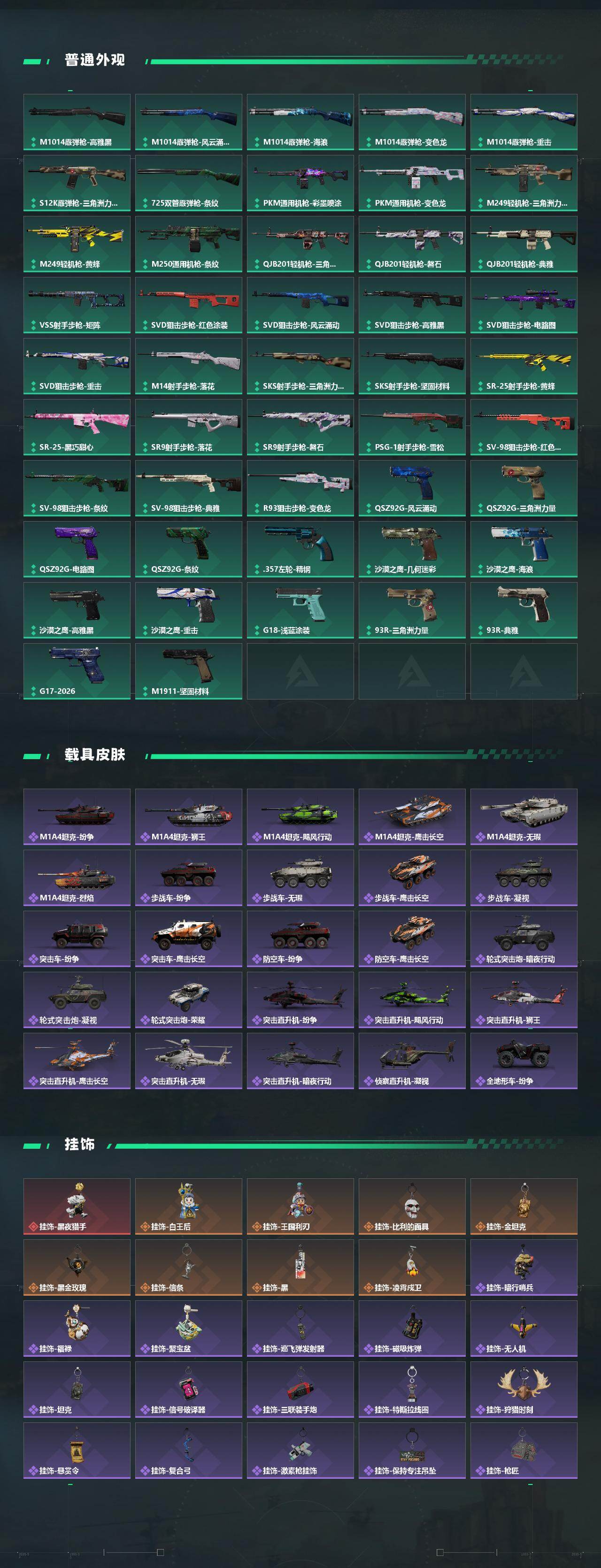 【近战皮肤】:近战-信条,近战-怜悯,近战-赤枭,近战-电锯惊魂,近战-处刑者1级,近战-黑鹰
