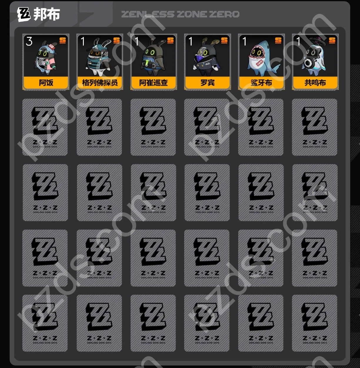 绝区零三小只,0+1爱芮,0+1南宫羽,00千夏,队伍强度高,其他限定都是00,差55抽大保底