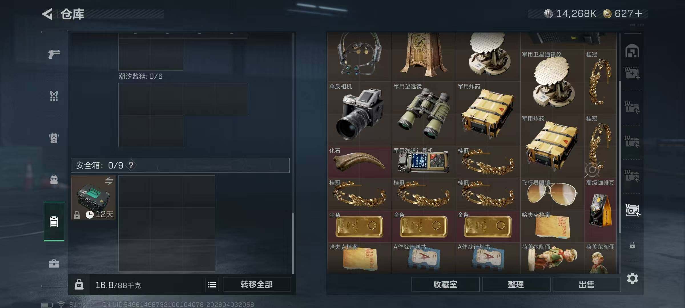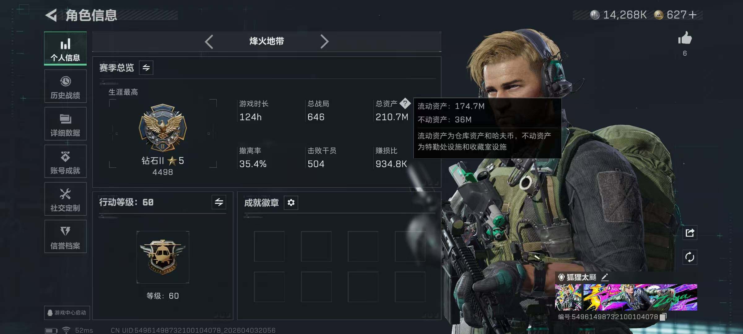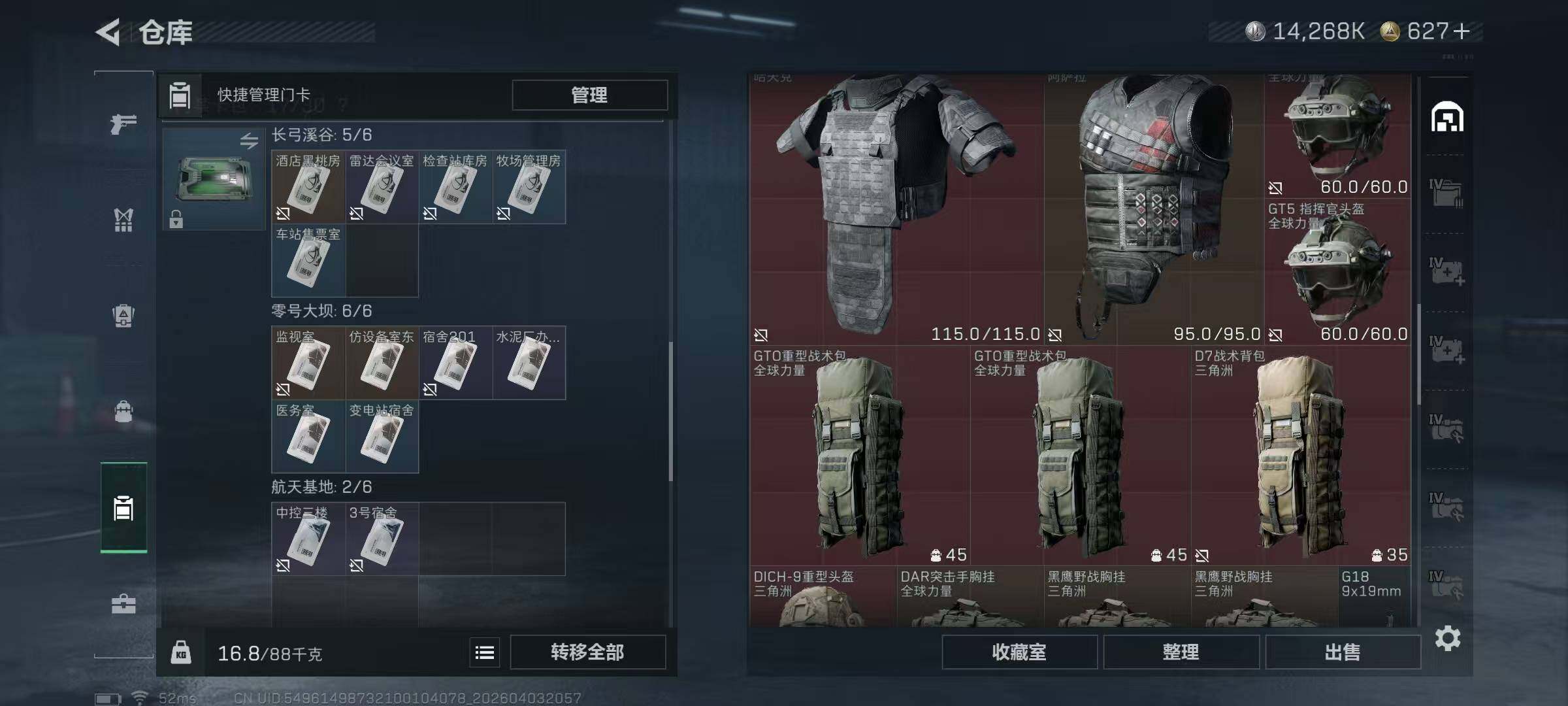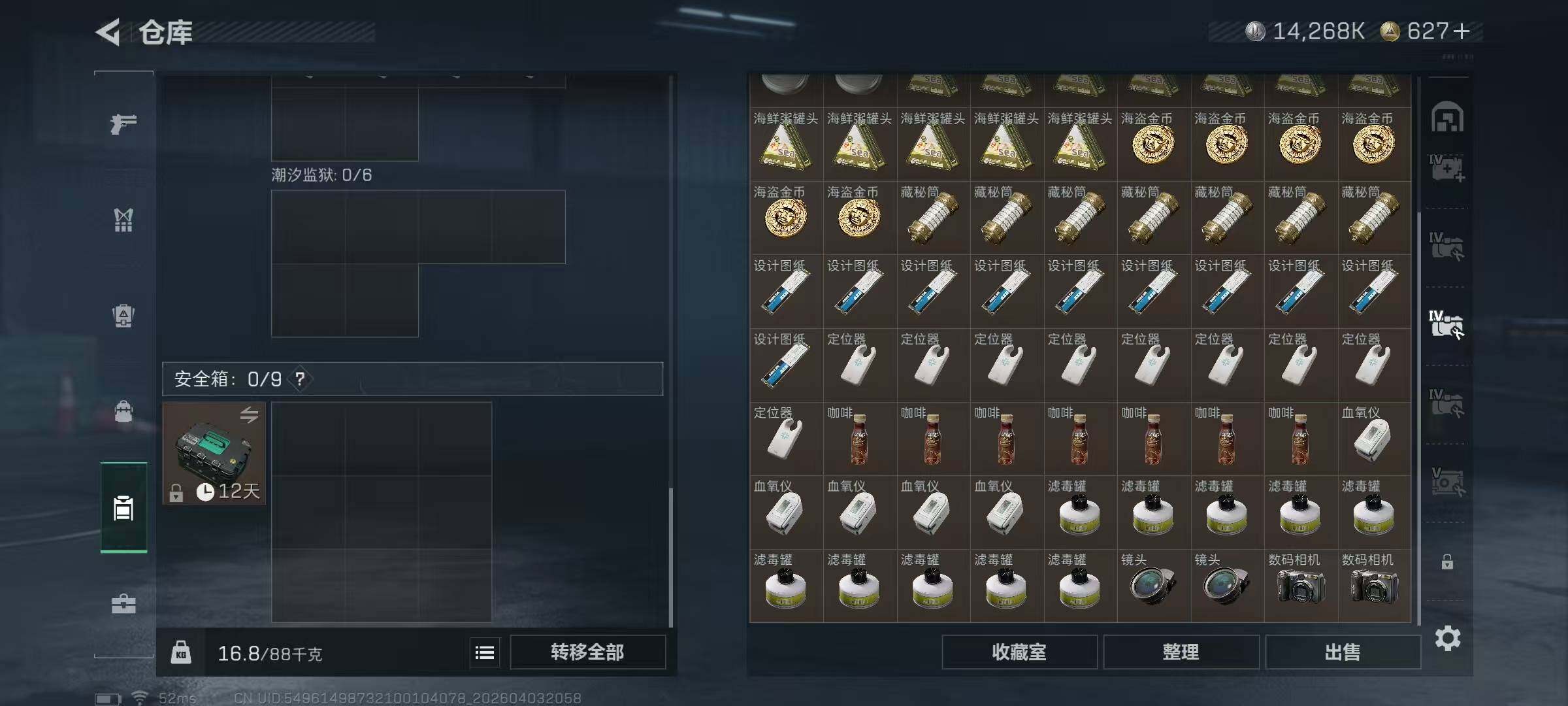 【SJ1648】【无封禁满体满负带S8顶级3X3】60级/总资210M/流资174M/627点卷/刀皮(处刑者)蛊(不羁人生)/8级仓库7级体力7级负重1级潜水/70发AW子弹