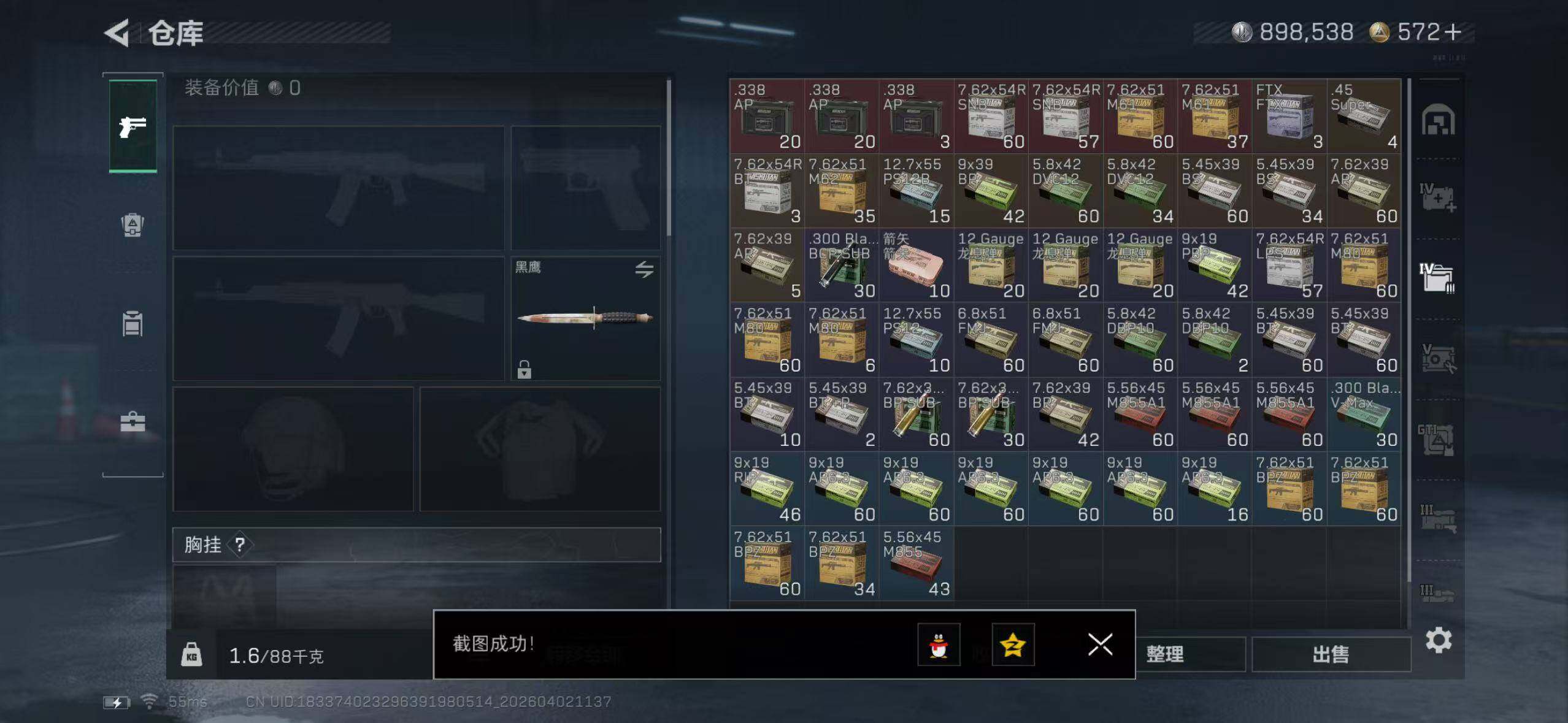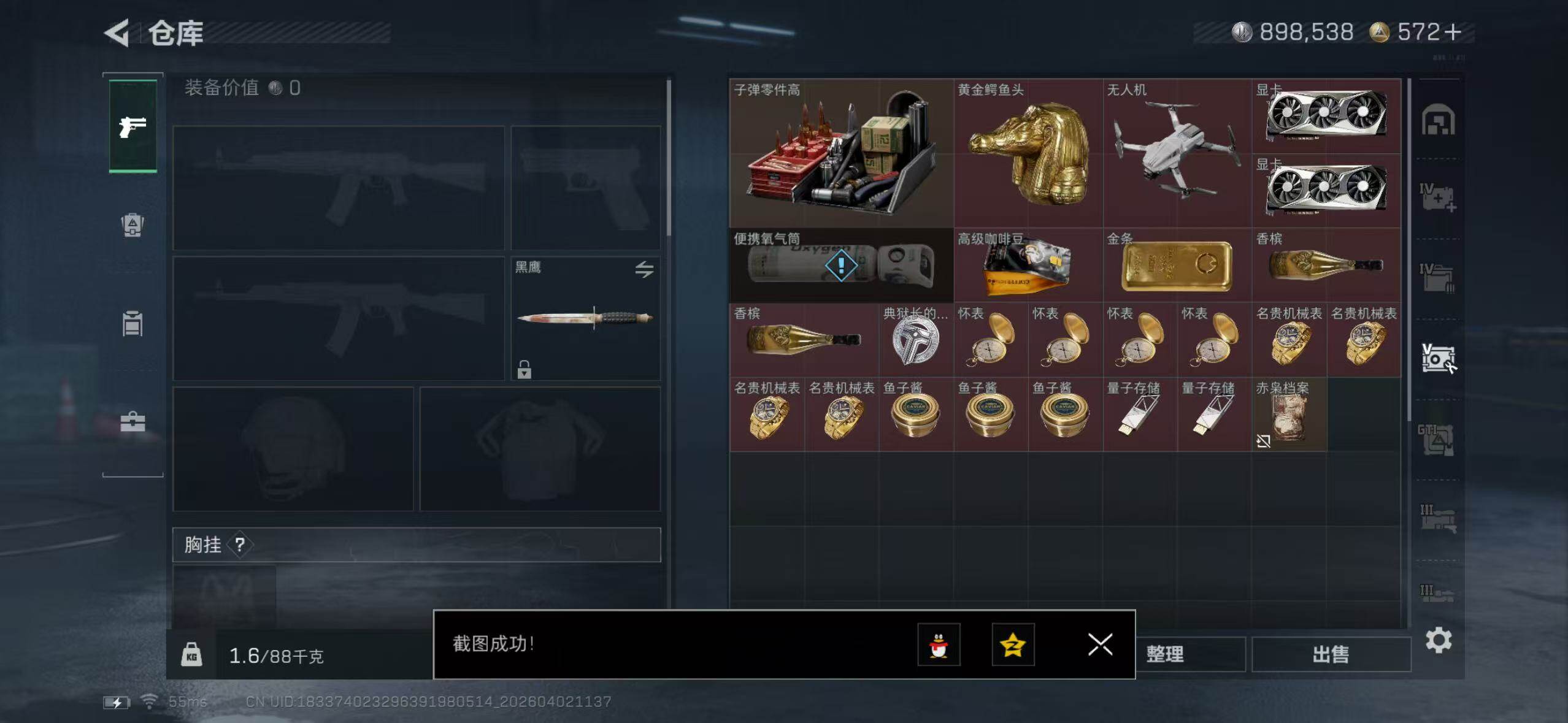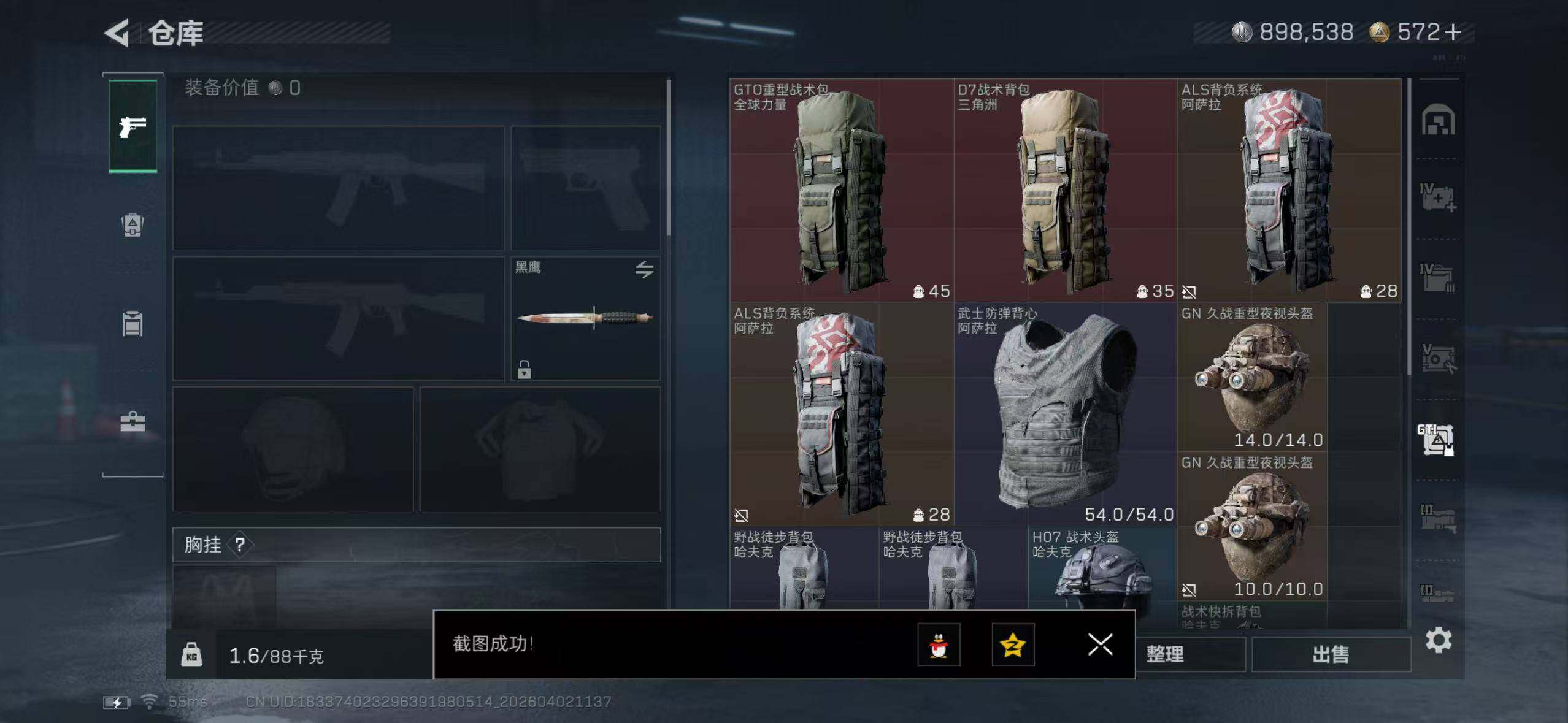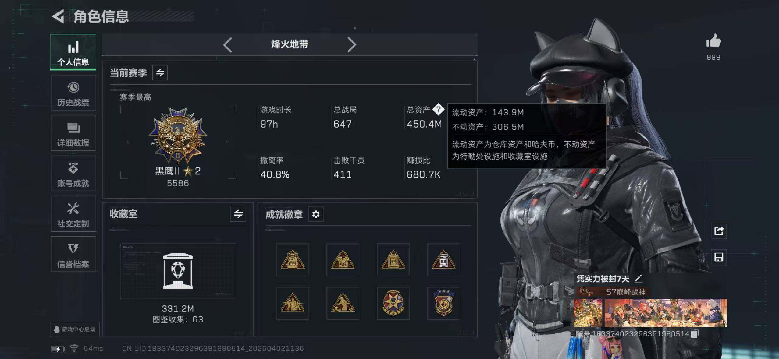【SJ1631】449m总资产-898k哈夫币-60烽火等级-黑鹰-32战场等