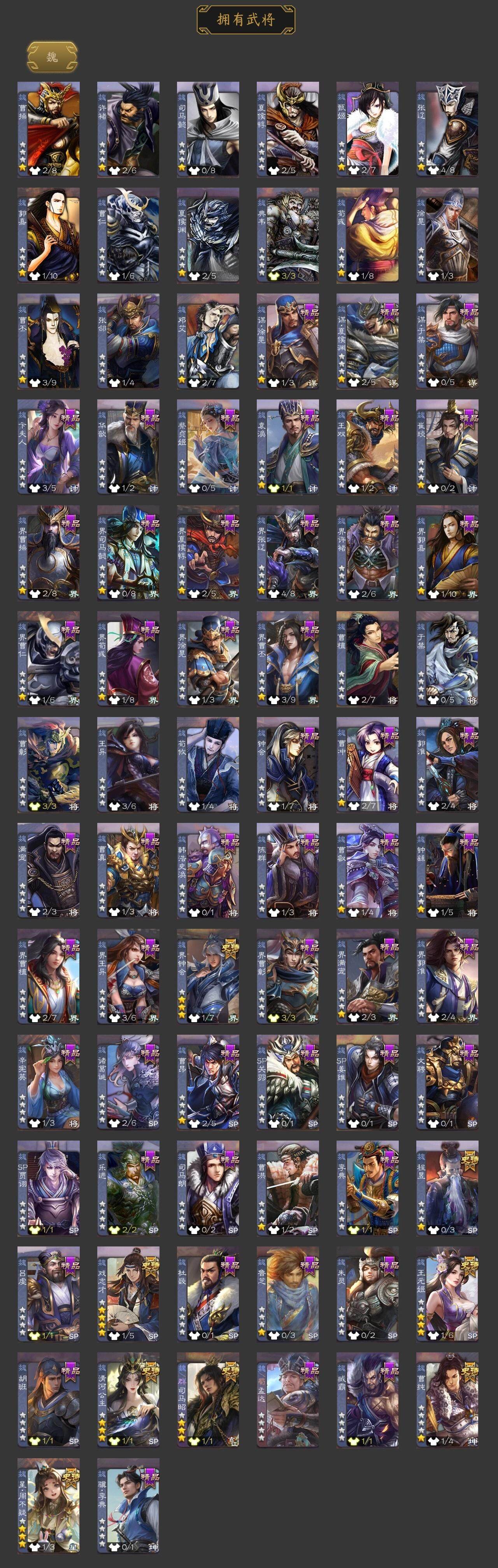 神吕布,神赵云,神张辽,星周不疑,王元姬,界钟会,曹纯,戏志才,清河公主,程昱,谋黄忠,谋赵云,谋马超,赵襄,沙摩柯,谯周,界黄忠,花鬘,谋关羽,界徐盛,裴秀,张让,麹义,沮授,