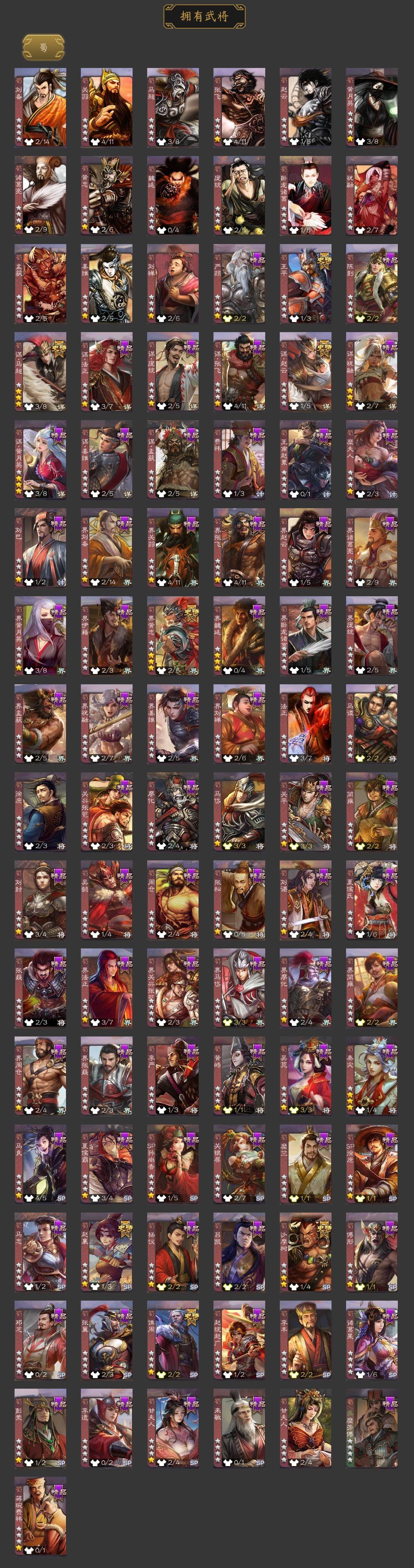 神吕布,神赵云,神陆逊,神张辽,神郭嘉,神太史慈,神孙策,神荀彧,神诸葛亮,曹髦,星周不疑,杨修,王元姬,王凌,界钟会,界曹真,嵇康,郝昭,陈琳,曹婴,曹纯,戏志才,谋曹丕,程